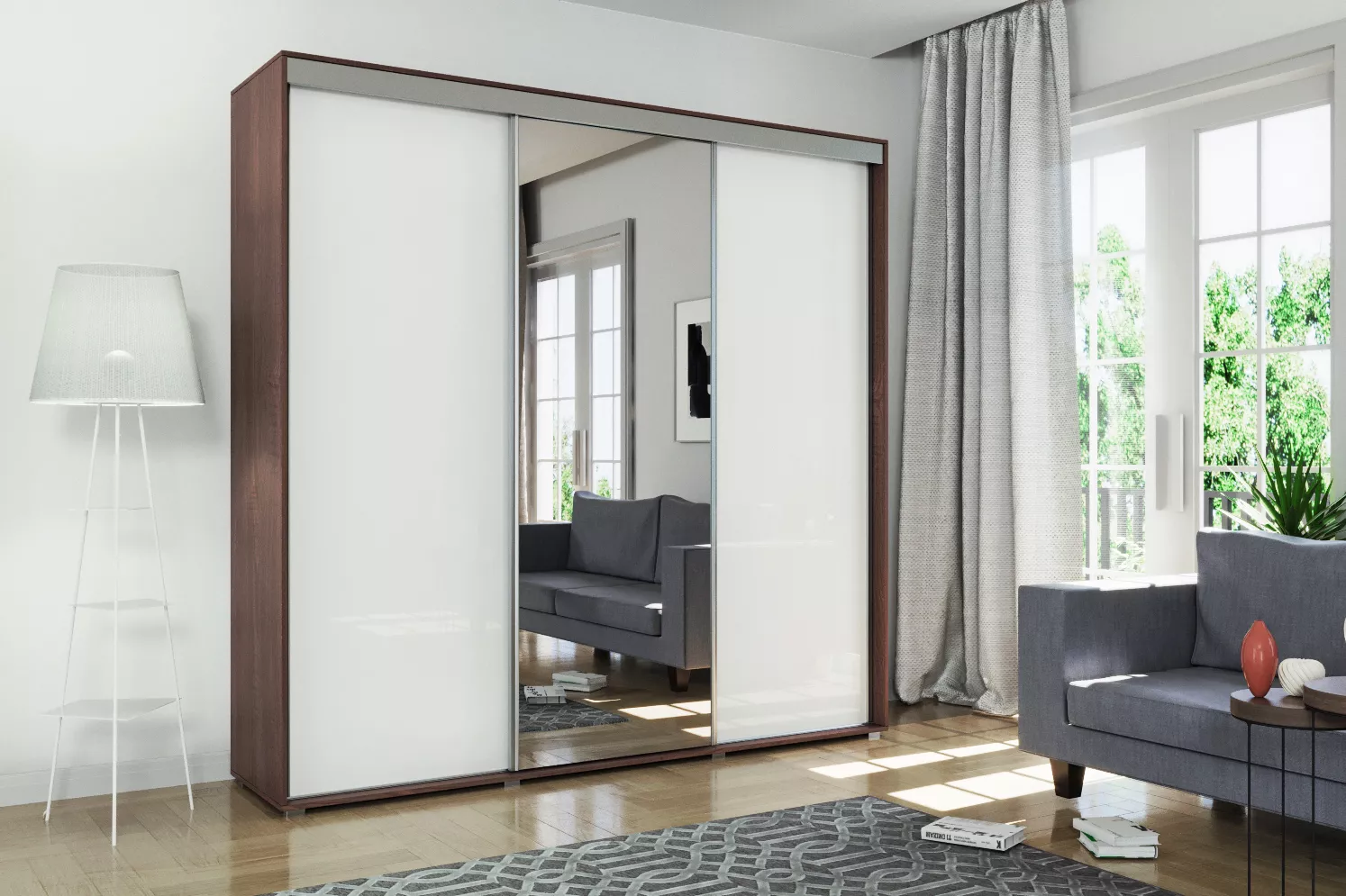 Šatní skříň MATEO se zrcadlem se hodí do všech typů interiérů. Za třemi posuvnými dveřmi se ukrývá hodně úložného prostoru, který hravě pojme všechno oblečení. Skříň nemá žádné výrazné úchytky, dveře se otevírají pomocí kovových lišt po stranách.