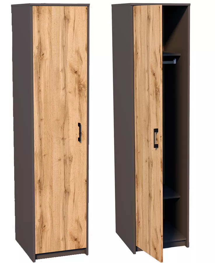 Úzká šatní skříň 45 SIMELA - grafitová / dub wotan