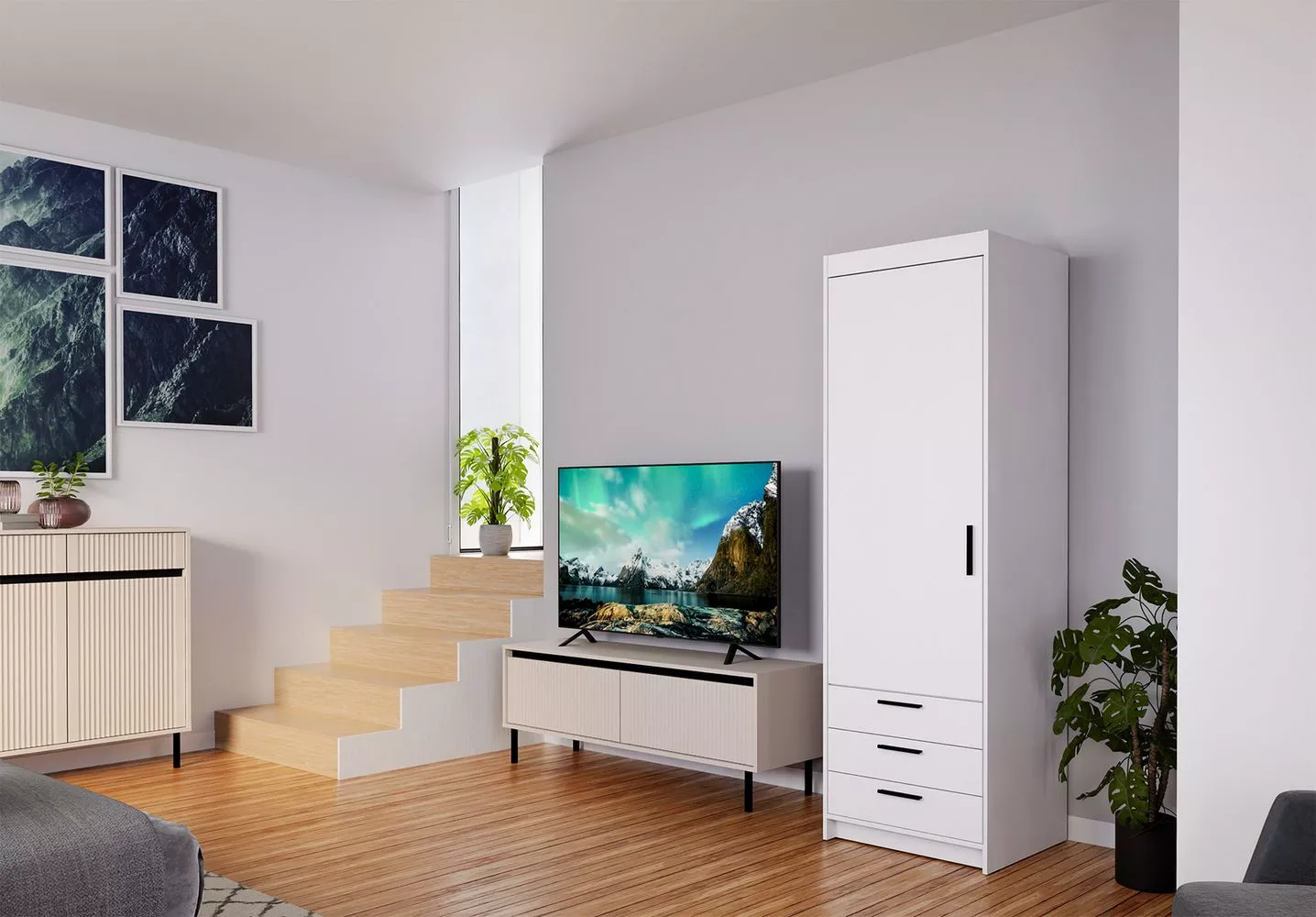 Policová skříň 60 PILINA se šuplíky je vhodná všech moderních ložnic či předsíní. Součástí jsou 3 police a 3 šuplíky.