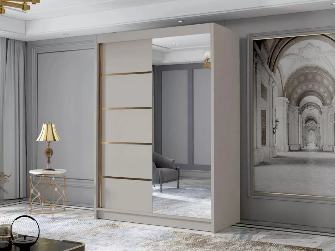Úzká šatní skříň 120 cm se zrcadlem STOWEL - kašmír