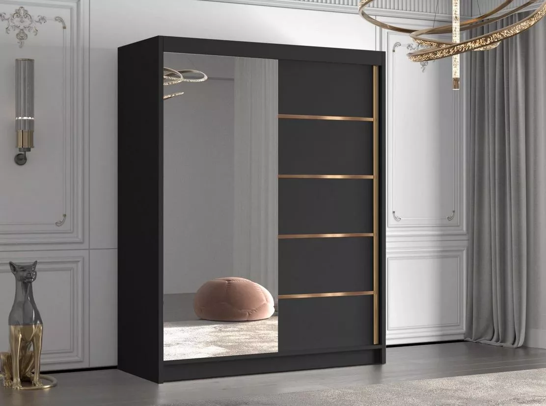 Vysoká šatní skříň 150 cm se zrcadlem TENAHA - černá