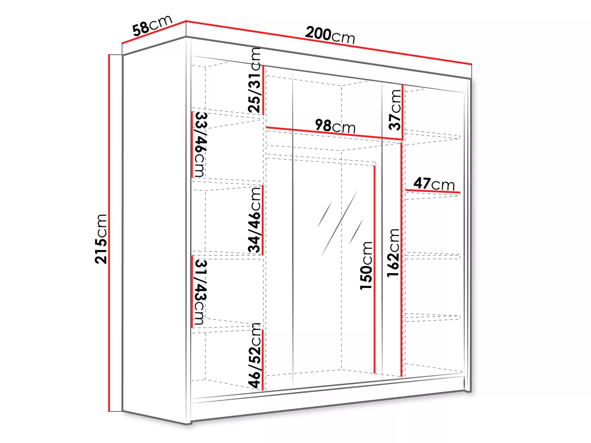 Šatní skříň 200 cm s posuvnými dveřmi TIOGA - bílá / černá