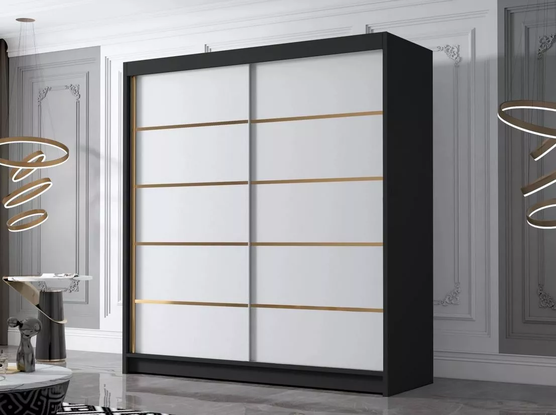 Velká šatní skříň 180 cm UVALDE - černá / bílá