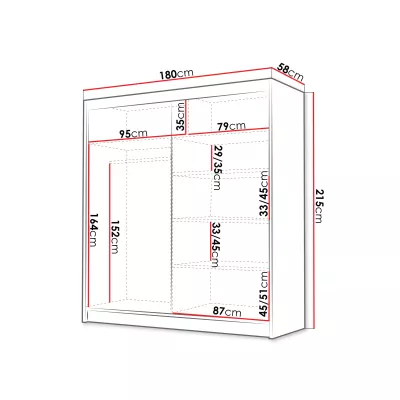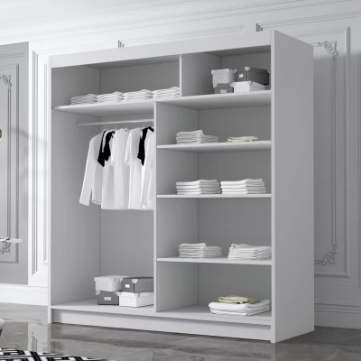 Uložte svou módní sbírku s elegancí a organizací do šatní skříně UVALDE. S impozantní výškou 215 cm a šířkou 180 cm nabízí dostatek prostoru pro vaše oblečení a další příslušenství. Uvnitř najdete prostorné police pro složení a uspořádání oblečení a šatní tyč, která je ideální pro pověšení vašich šatů.
