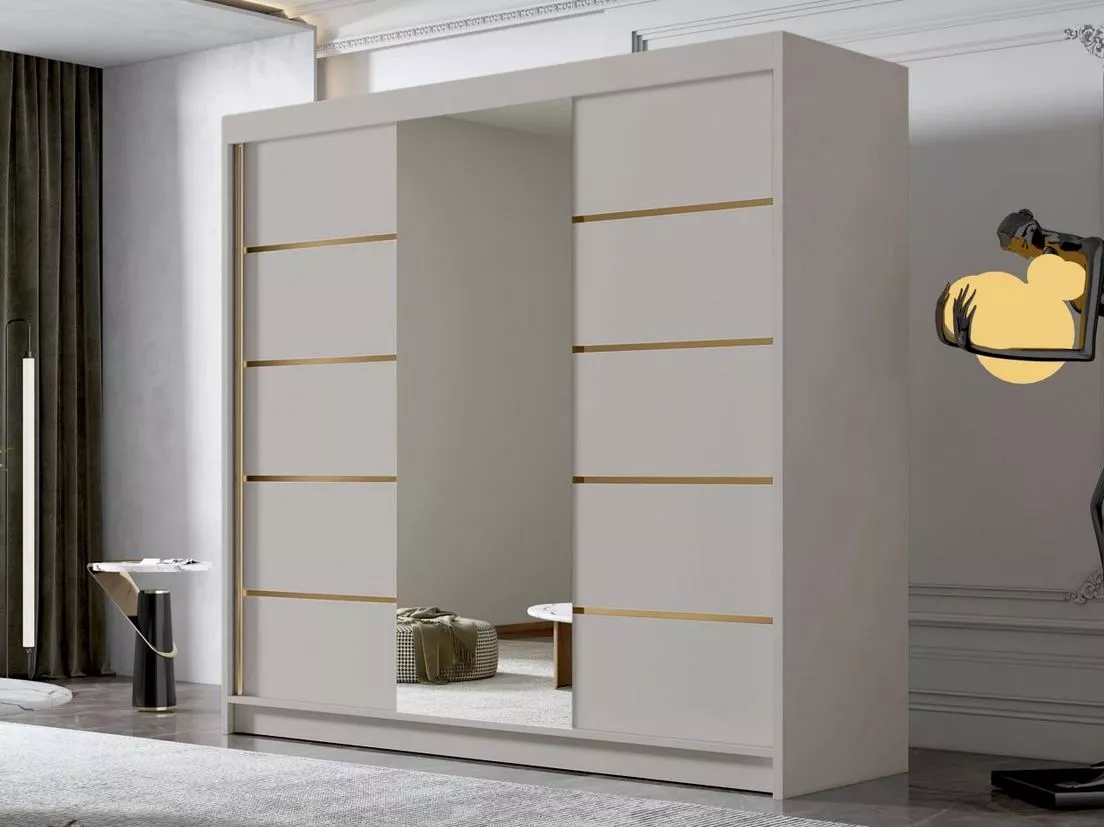 Vysoká šatní skříň 250 cm se zrcadlem VOLENTE - kašmír