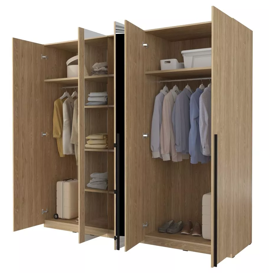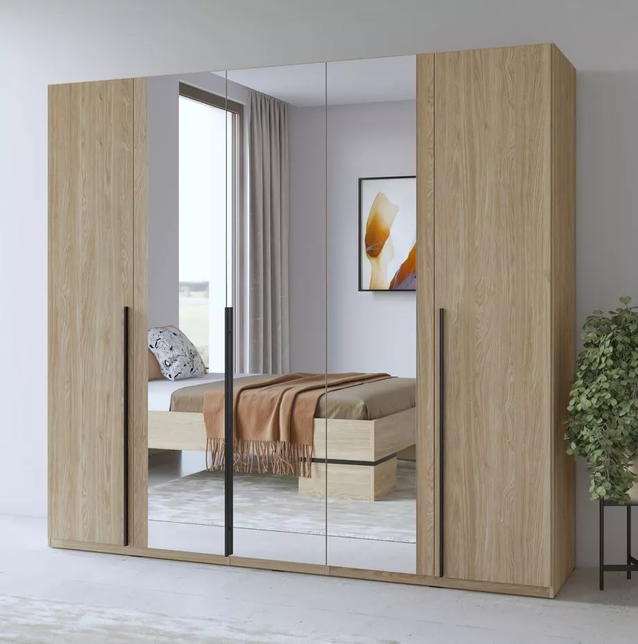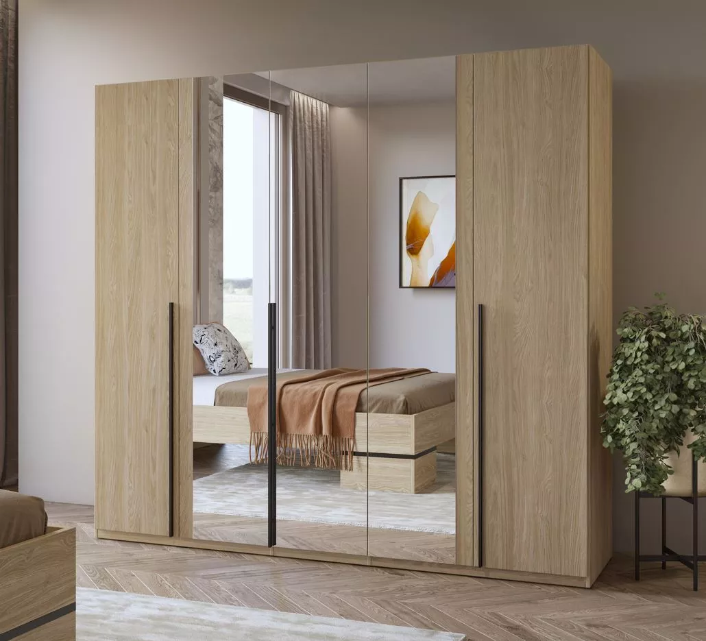 Uložte svou módní sbírku s elegancí a organizací do šatní skříně CLYDE. S impozantní výškou 209,8 cm a šířkou 225,2 cm nabízí dostatek prostoru pro vaše oblečení a další příslušenství. Uvnitř najdete prostorné police pro uložení a uspořádání oblečení a 2 šatní tyče, které jsou ideální pro pověšení vašich šatů.