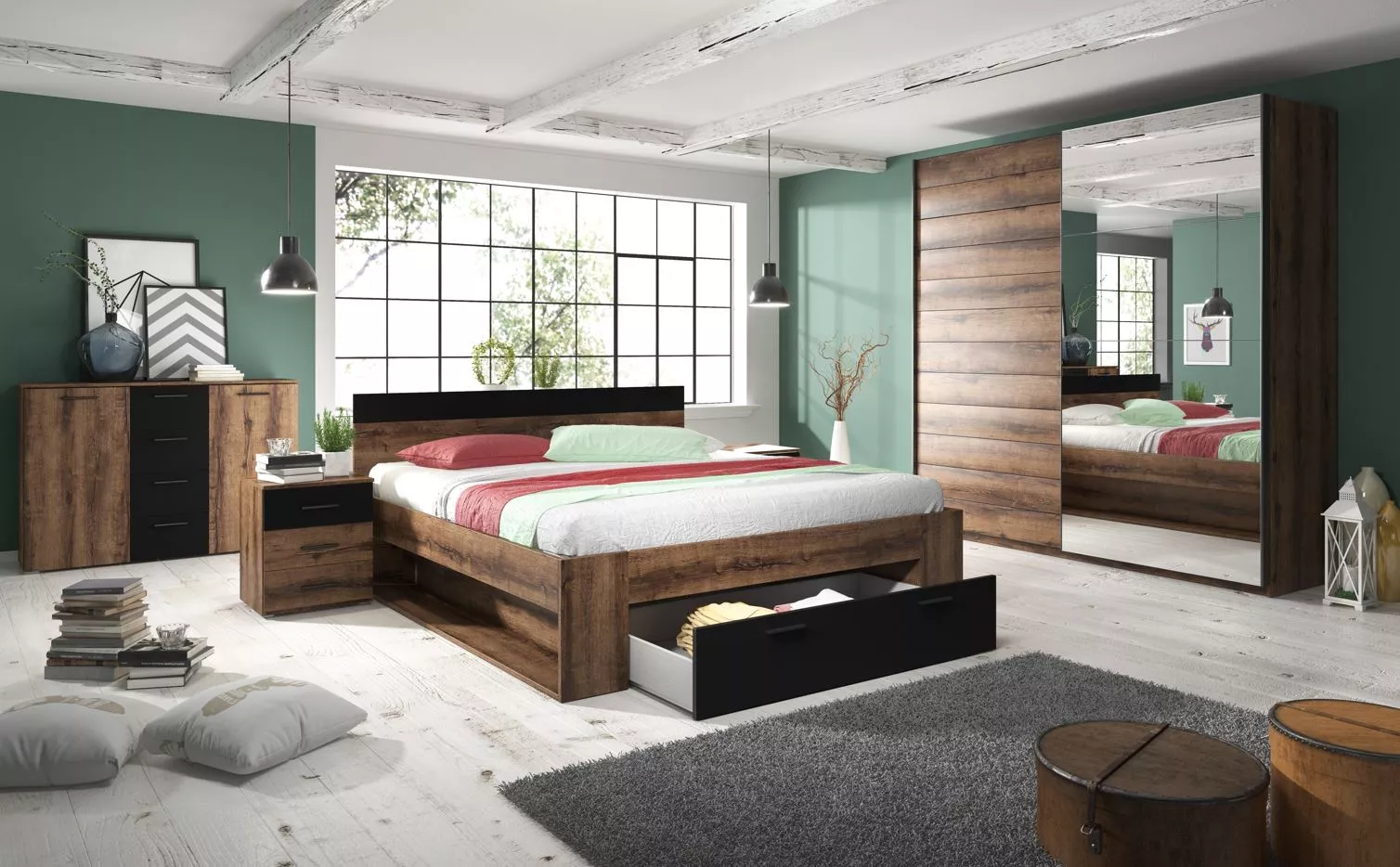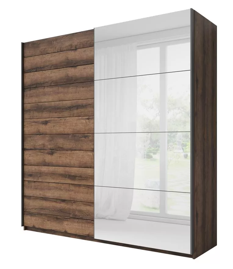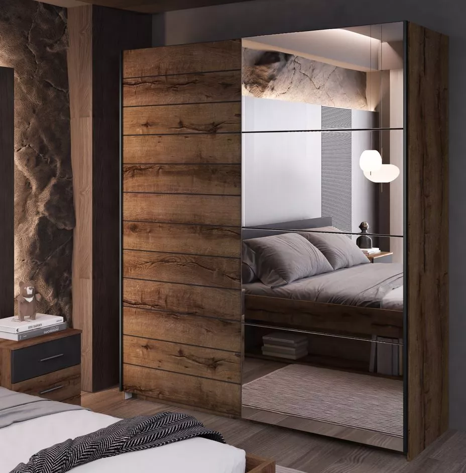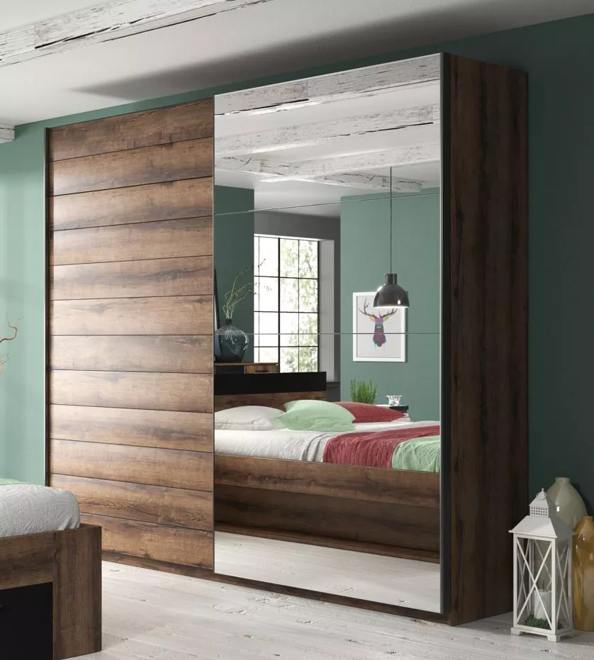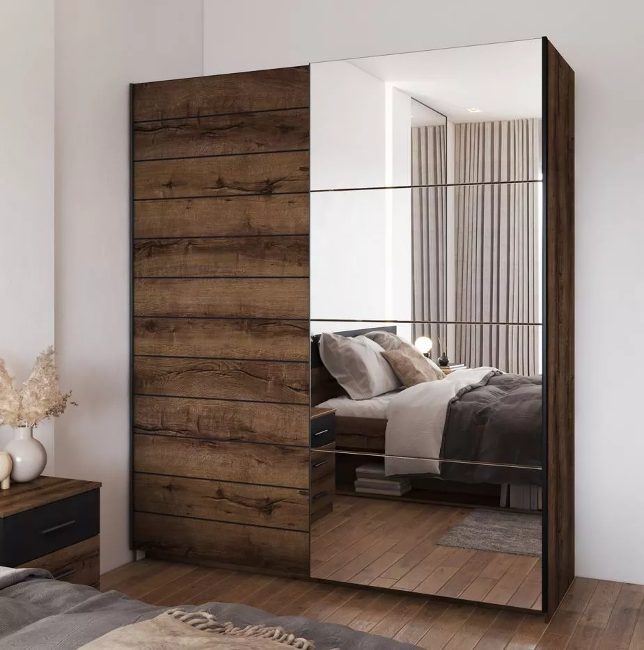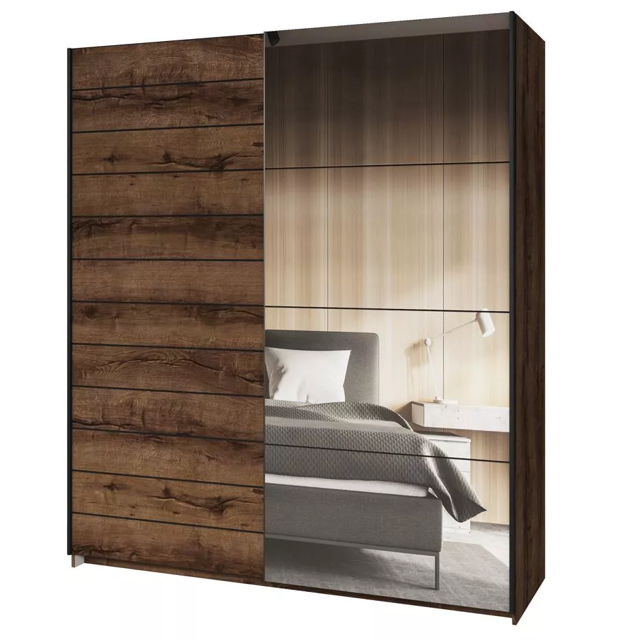 Zrcadlová šatní skříň 181 cm CROWEL - dub monastery / černá