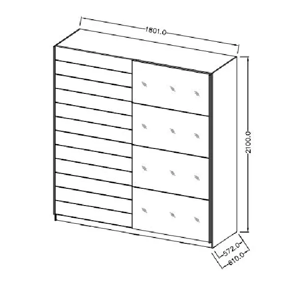 Zrcadlová šatní skříň CROWEL jistě upoutá pozornost každého, kdo hledá funkční a stylové řešení do své ložnice. Vnitřek skříně ukrývá šatní tyč na zavěšení oblečení a hluboké police. Zrcadlo opticky zvětšuje prostor a pozitivně ovlivňuje komfort užívání.