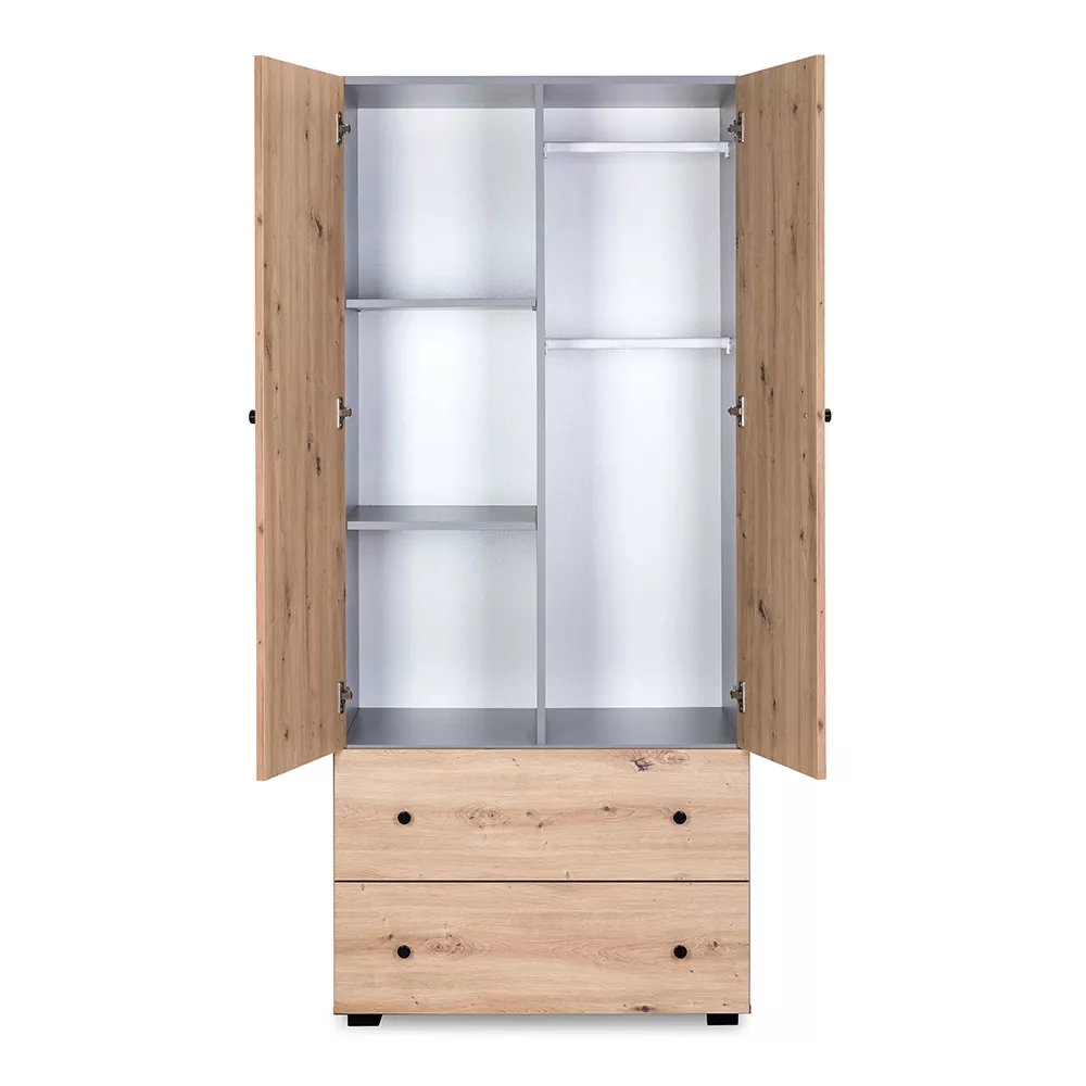 Šatní skříň MALALA se hodí do všech dětských pokojů. Skříň je vybavena policemi, šatními tyčemi a prostornými šuplíky.