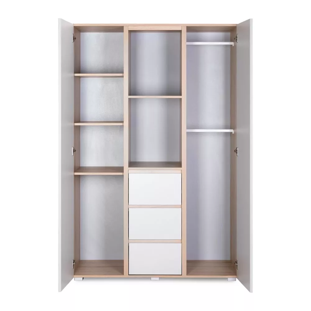 Prostorná šatní skříň AGIRA se hodí do všech dětských pokojů. Skříň je vybavena policemi, šatními tyčemi a šuplíky.