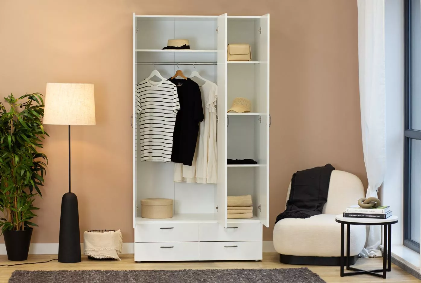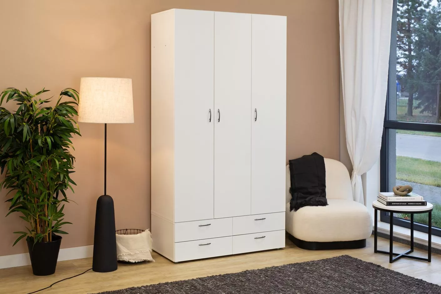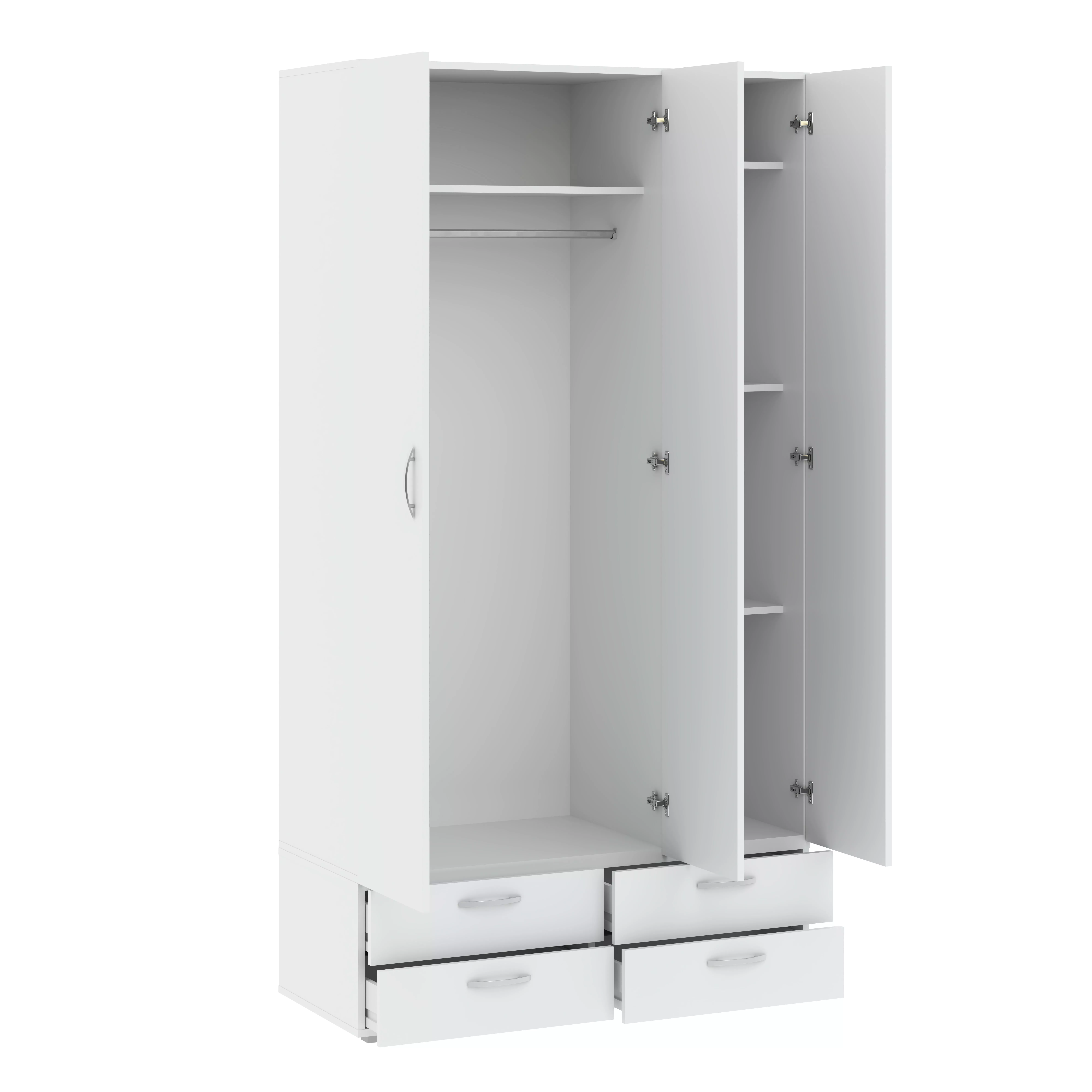 Třídveřová šatní skříň 111 cm se šuplíky RICHLAND - bílá