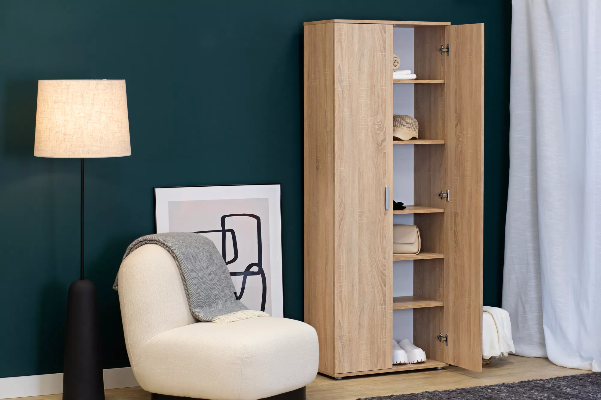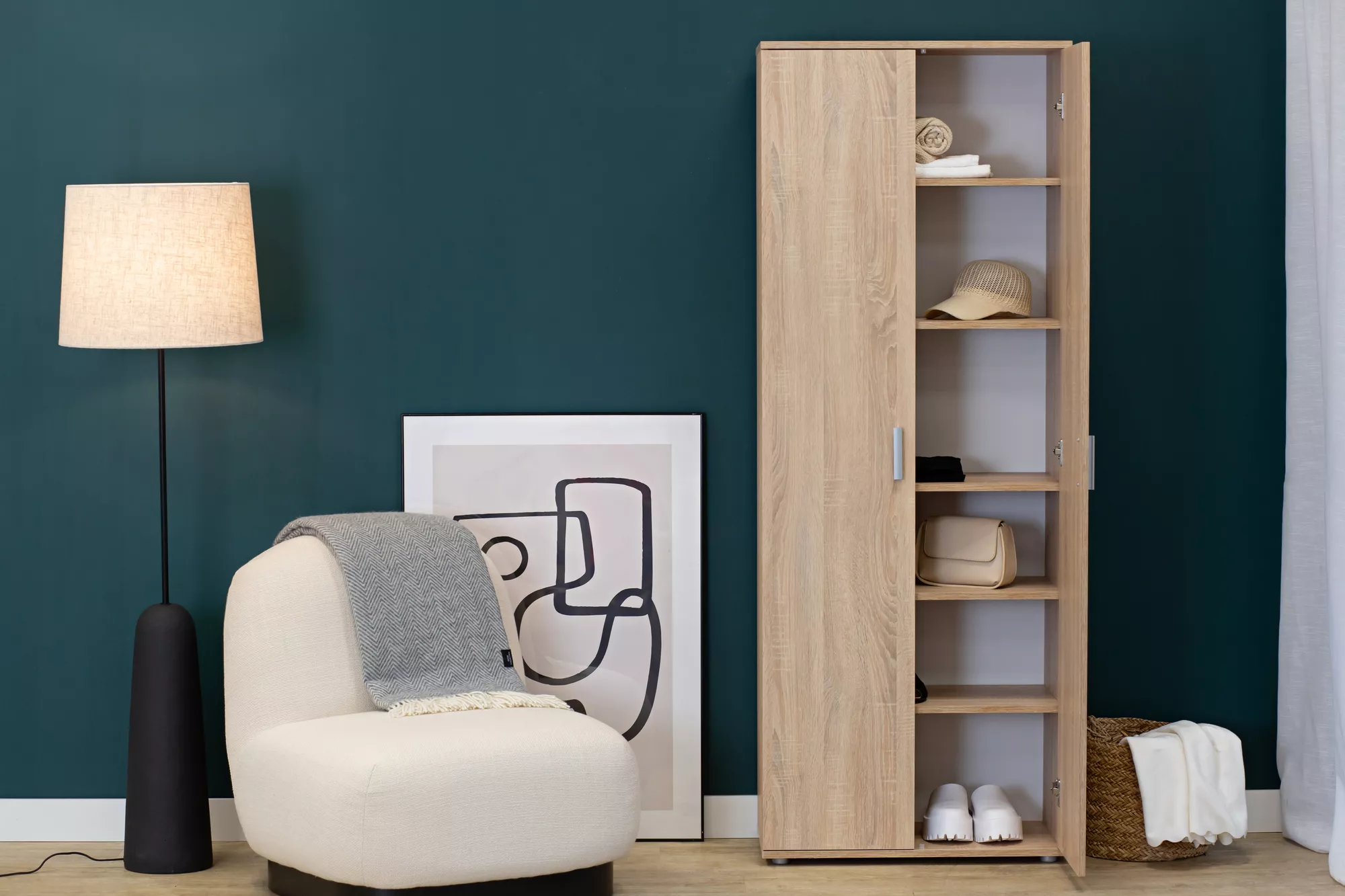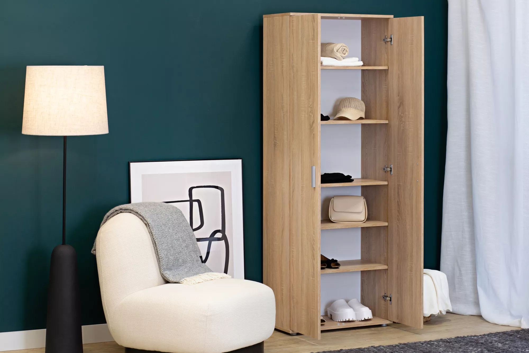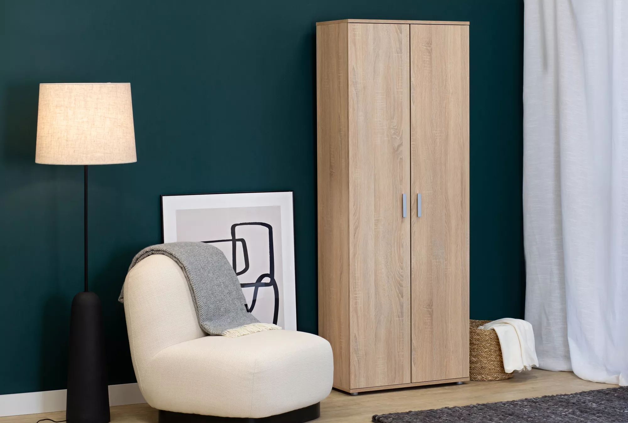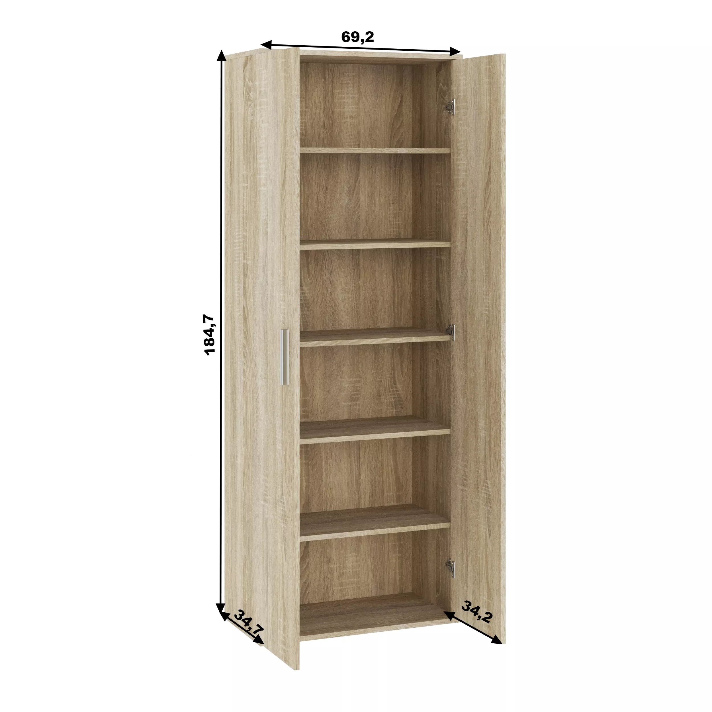 Vytvořte si dokonale organizovaný a stylově zařízený šatník se skříní SAVOY, která nabízí dostatek prostoru pro ukládání oblečení, obuvi i módních doplňků. Díky své šířce 69 cm se skříň hodí i do menších ložnic a předsíní.