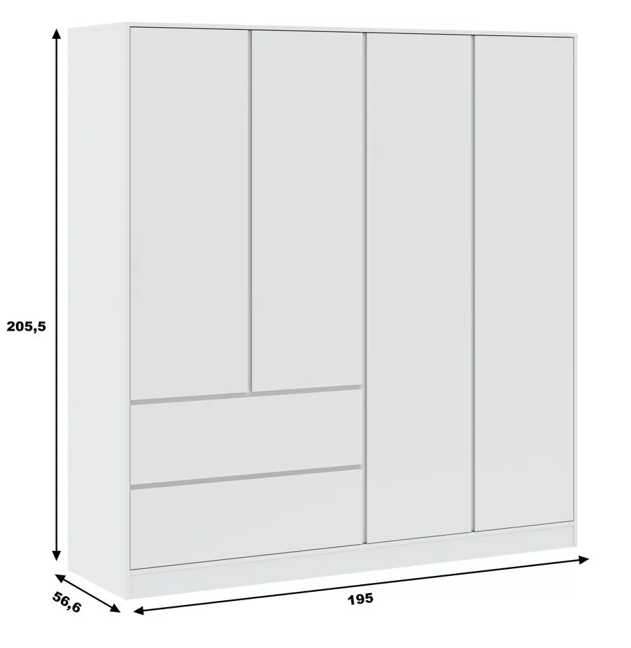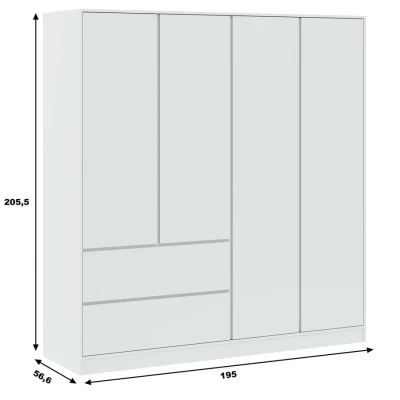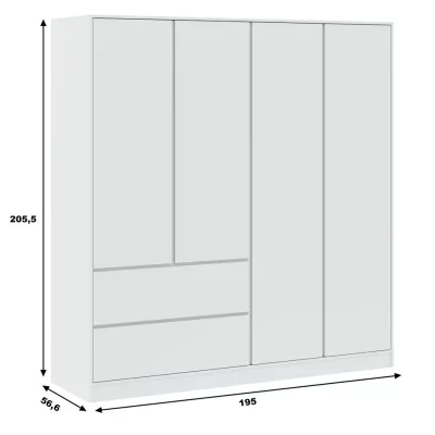 Šatní skříň se šuplíky 195 cm SHERMAN - bílá