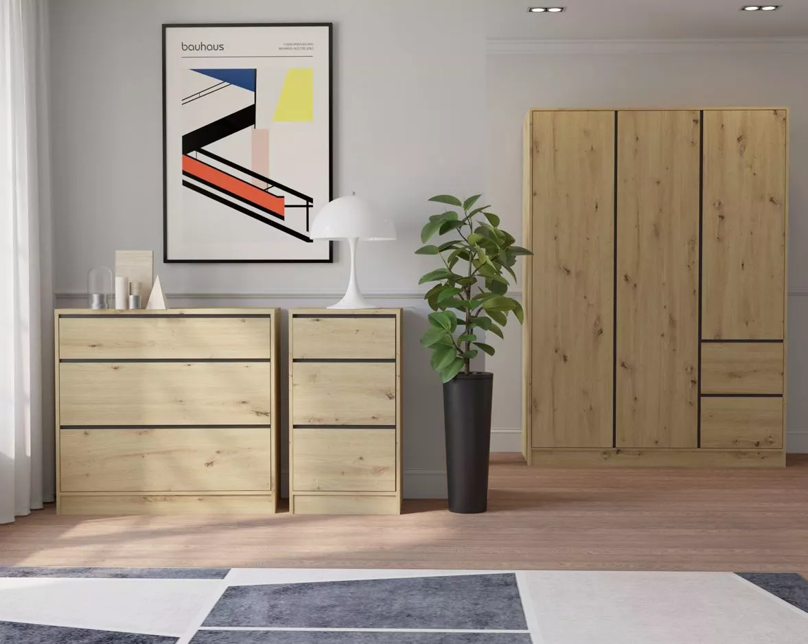 Šatní skříň se šuplíky 147 cm SHERMAN - dub artisan / antracitová