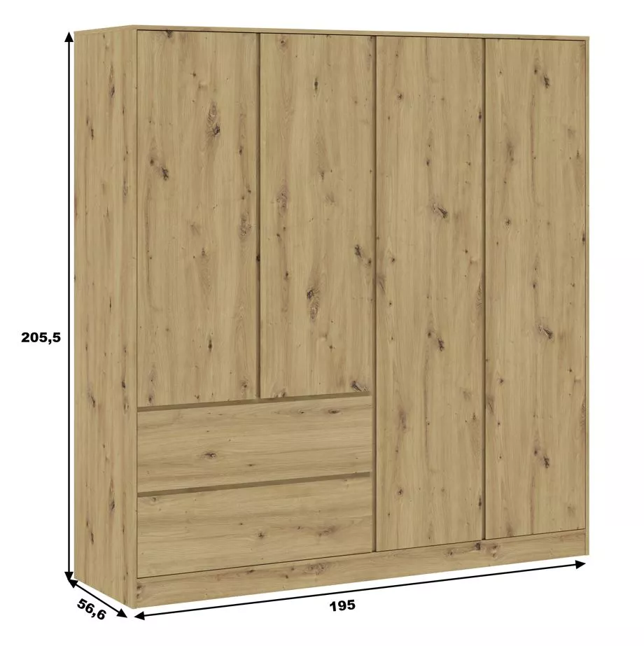 Šatní skříň se šuplíky 195 cm SHERMAN - dub artisan
