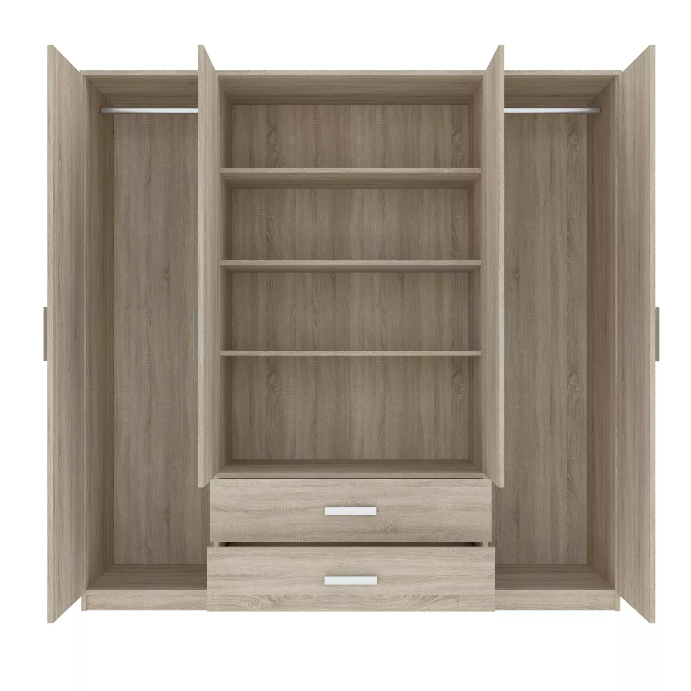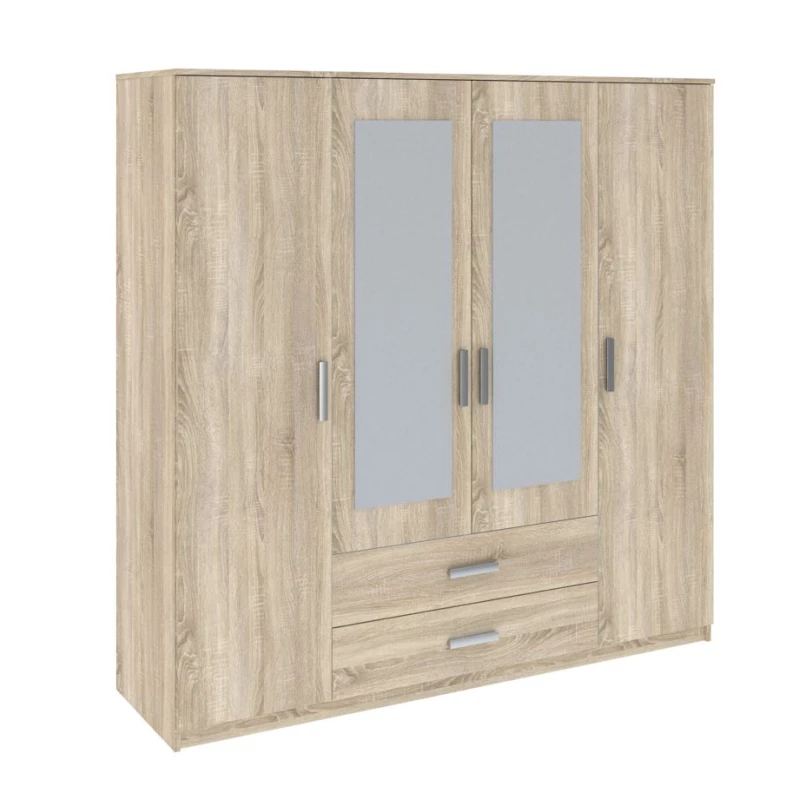Kombinovaná šatní skříň SPYKE jistě upoutá pozornost každého, kdo hledá funkční a stylové řešení do své ložnice. Skříň je vybavena 2 šatními tyčemi na zavěšení oblečení, šuplíky a hlubokými policemi. Zrcadla umístěná na dvířkách opticky zvětšují prostor a vnáší do interiéru více světla.