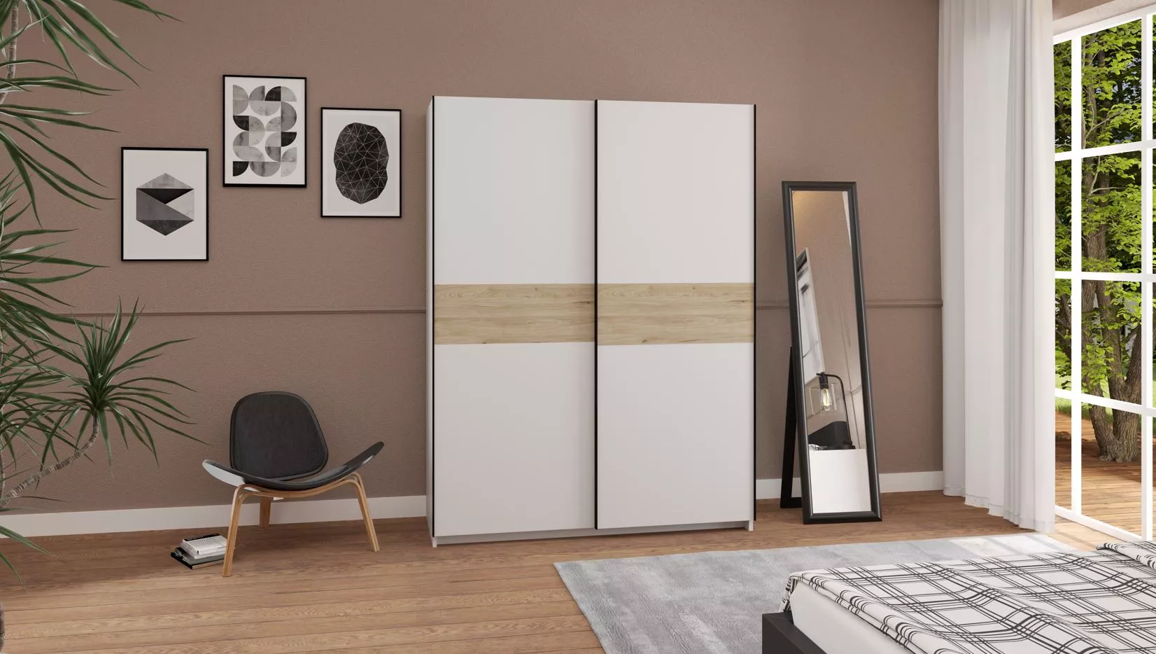 Šatní skříň RANDLER poskytuje ideální úložné řešení, které pomáhá udržet váš domov čistý a upravený. Stylový vzhled a praktické uspořádání usnadňuje ukládání oblečení, obuvi a doplňků, což přináší pohodlí a pořádek do každodenního života. Skříň je vybavena 2 šatními tyčemi a poličkami. Do skříně lze zakoupit set poliček, který naleznete v sekci Doporučujeme přikoupit.