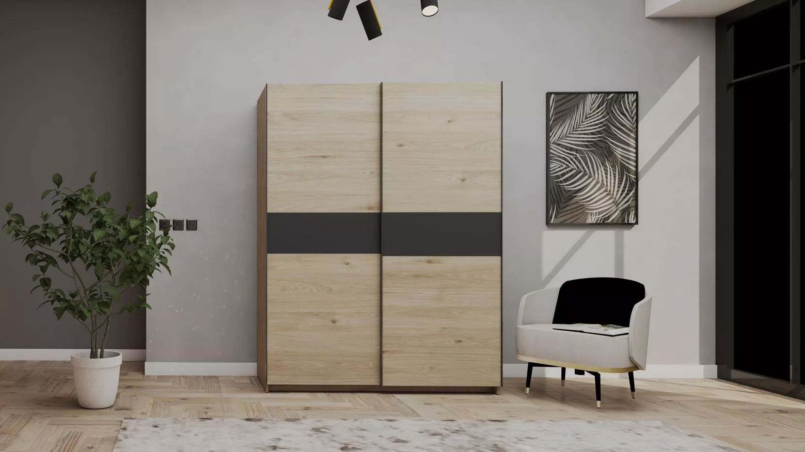 Šatní skříň 151 cm RANDLER - ořech hickory / antracitová