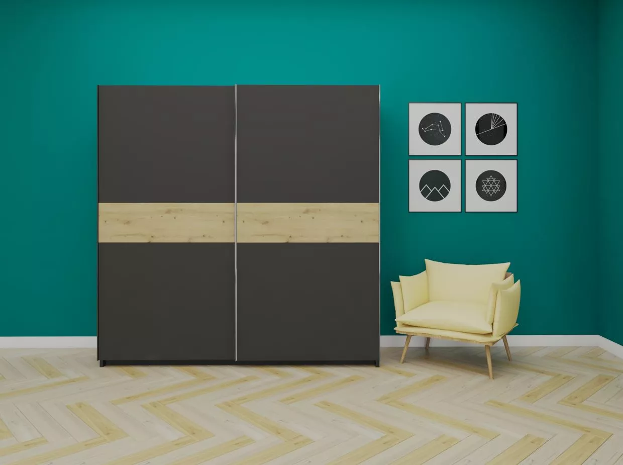 Šatní skříň 200 cm RANDLER - antracitová / ořech hickory
