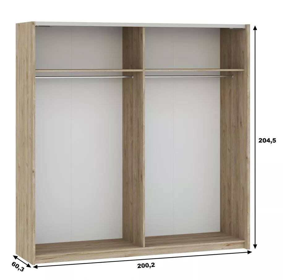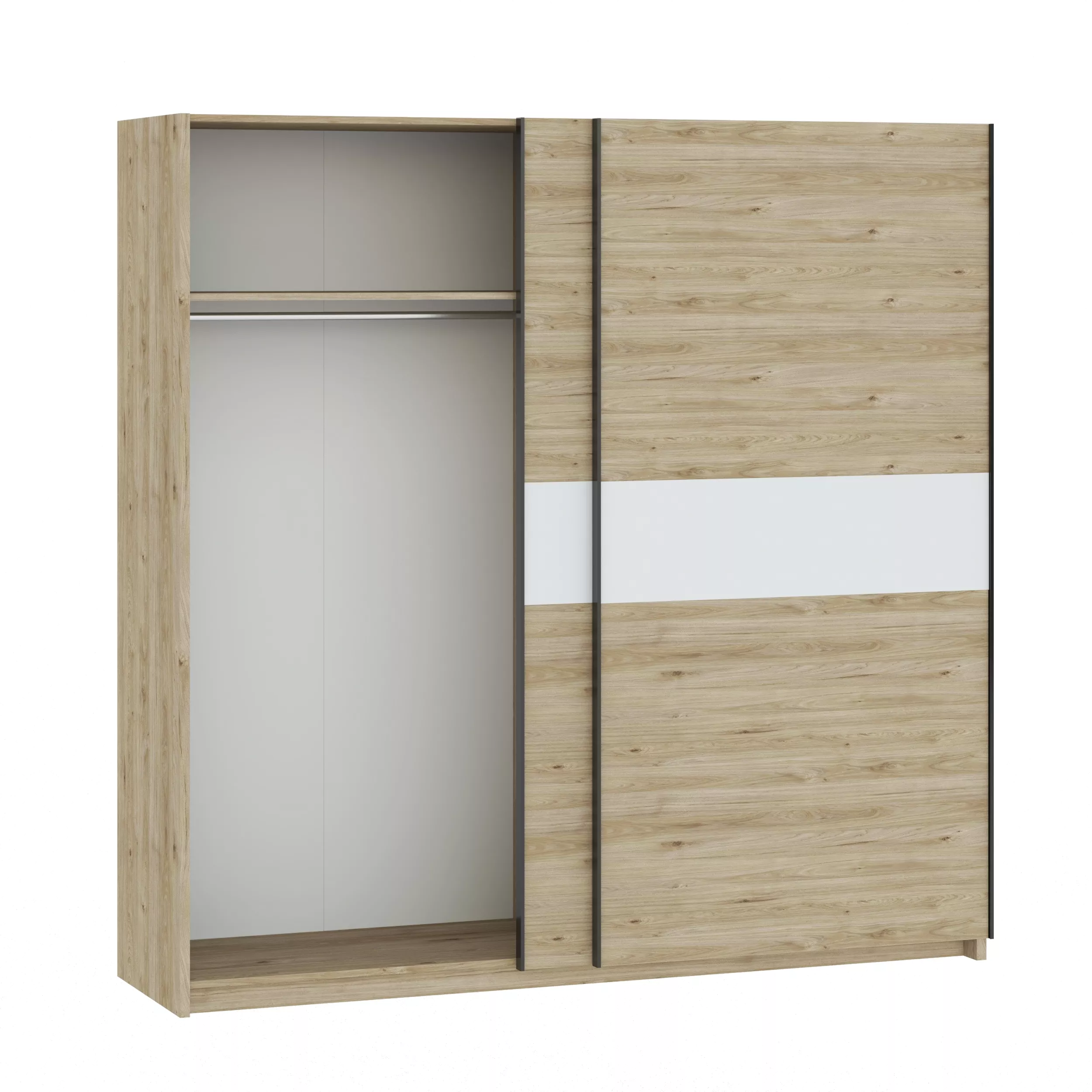 Šatní skříň RANDLER poskytuje ideální úložné řešení, které pomáhá udržet váš domov čistý a upravený. Stylový vzhled a praktické uspořádání usnadňuje ukládání oblečení, obuvi a doplňků, což přináší pohodlí a pořádek do každodenního života. Skříň je vybavena 2 šatními tyčemi a poličkami. Do skříně lze zakoupit set poliček, který naleznete v sekci Doporučujeme přikoupit.
