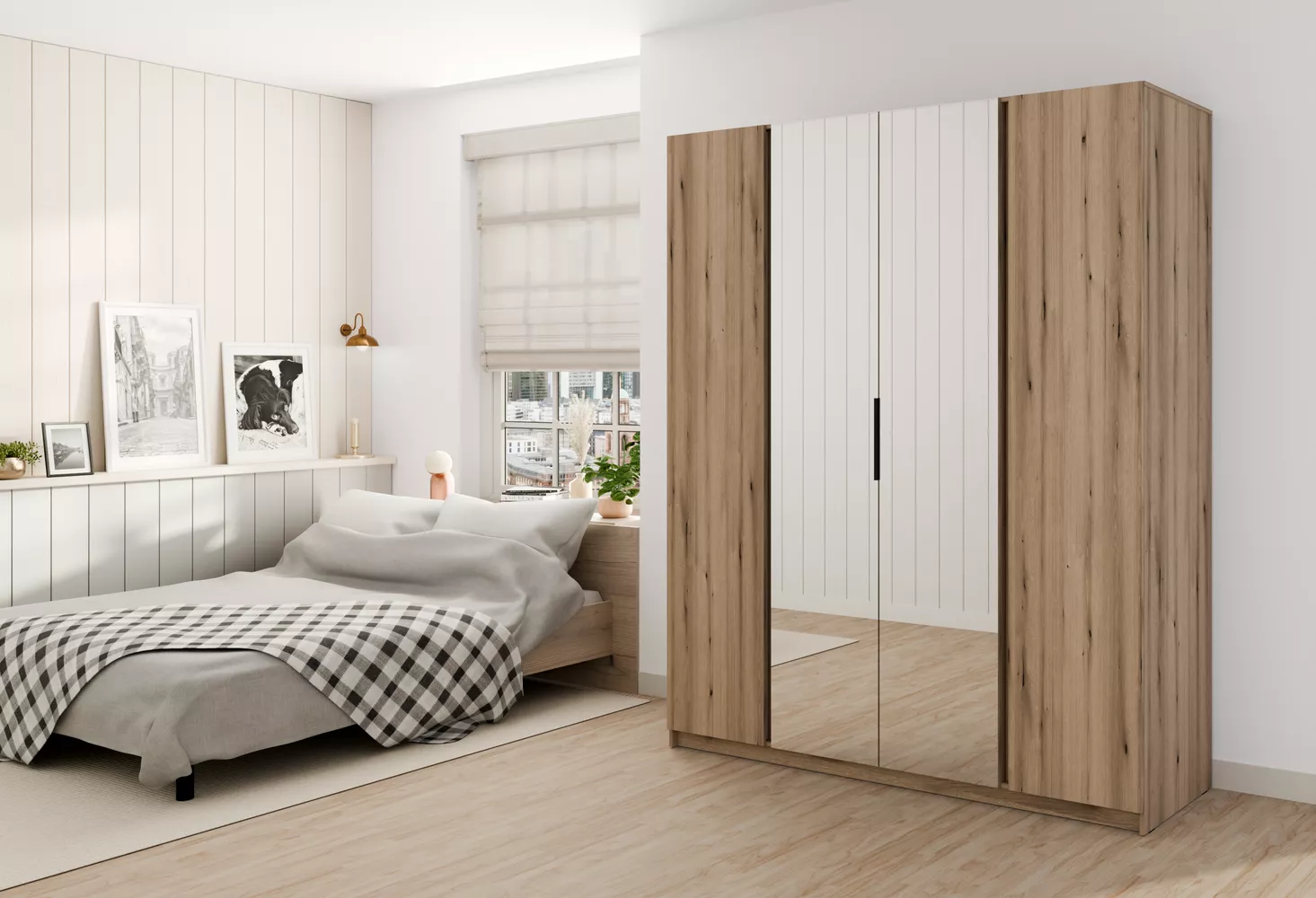 Vysoká šatní skříň VERU se hodí do všech moderních ložnic. Kombinace polic a šatní tyče nabízí dostatek úložného prostoru pro vaše oblečení.