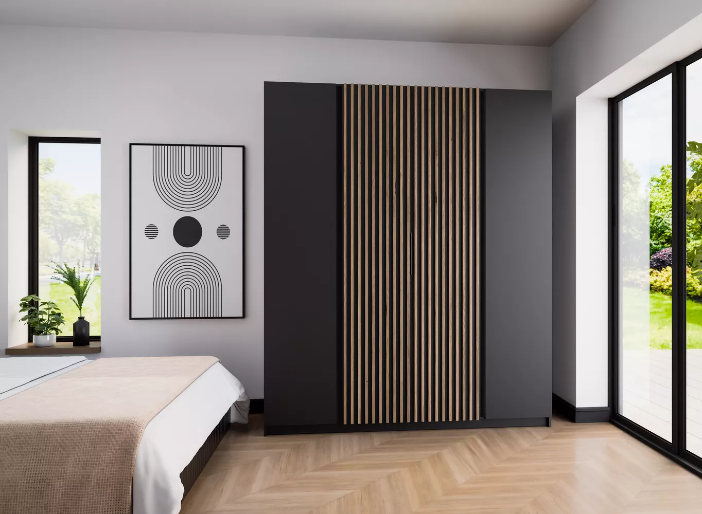 Prostorná skříň 200 VERU - černá / dub evoke / černá