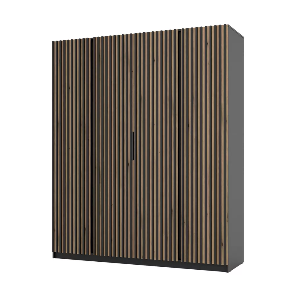 Čtyřdvéřová skříň 200 VERU - dub evoke / černá / černá