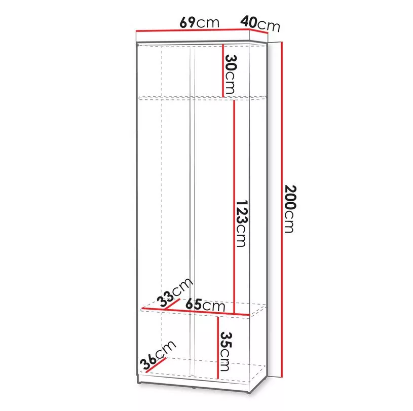 Dvoudveřová skříň BEZA poskytuje ideální úložné řešení, které pomáhá udržet váš domov čistý a upravený. Skříň je vybavena 2 policemi a praktickou šatní tyčí pro zavěšení svrchního oblečení.