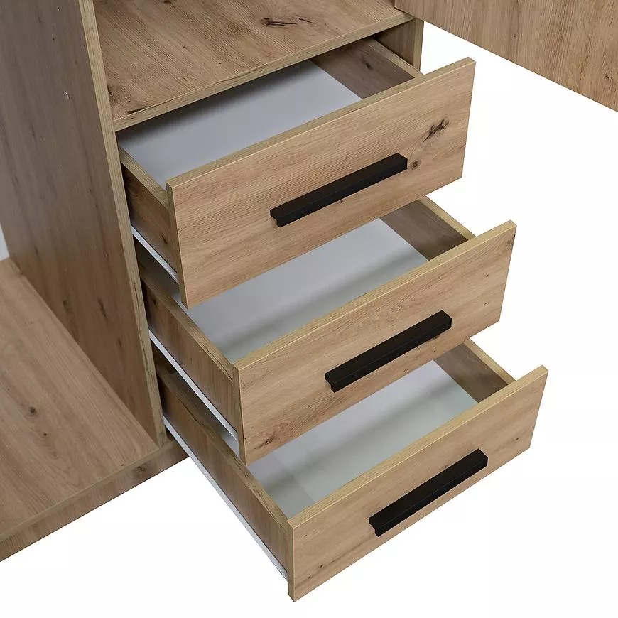 Šatní skříň NALINA se zrcadlem se hodí do všech moderních studentských i dětských pokojů. Součástí skříně jsou 4 police, 3 šuplíky a šatní tyč.