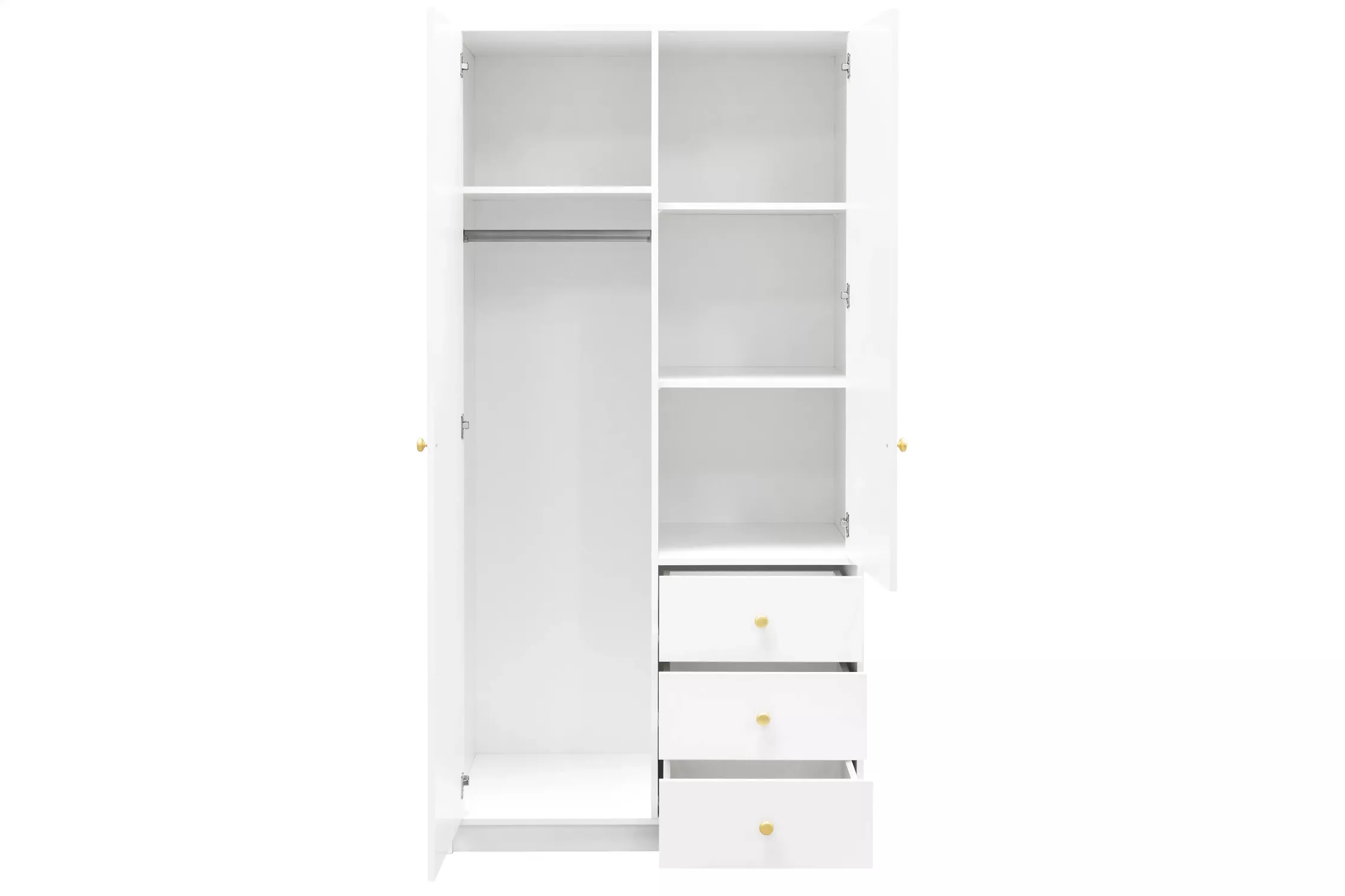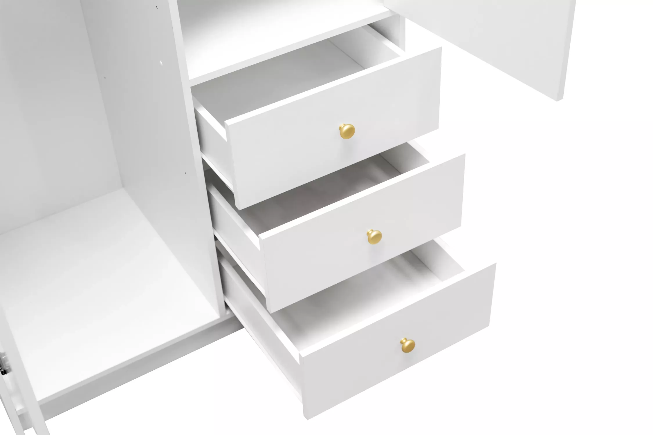 Šatní skříň JOELE se hodí do všech moderních studentských i dětských pokojů. Součástí skříně jsou 3 police, 3 šuplíky a šatní tyč.