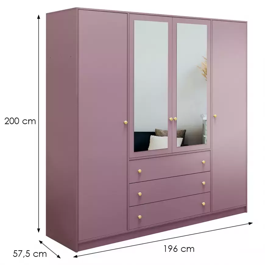 Kombinovaná skříň 196 JOELE se zrcadlem - švestka