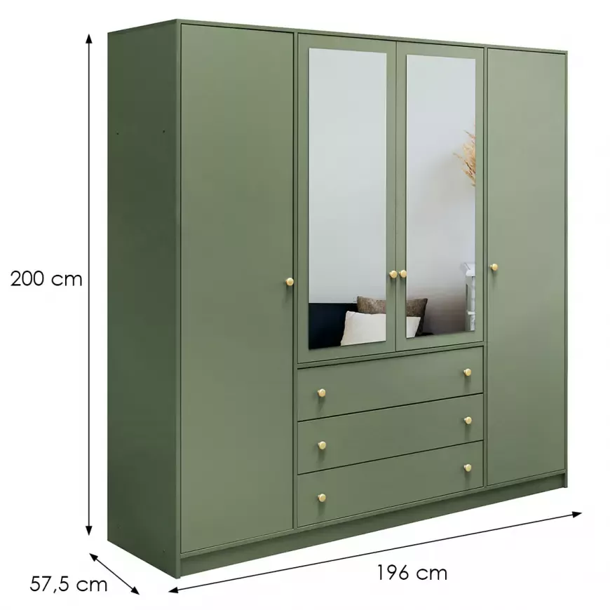 Kombinovaná skříň 196 JOELE se zrcadlem - zelená