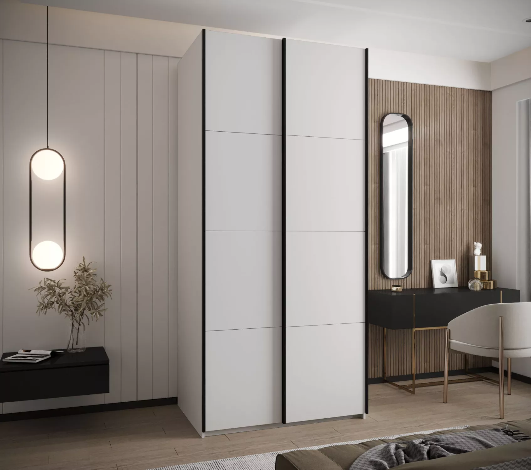 Dvoudveřová skříň SAMARA 1 představuje spojení elegance a funkcionality. Nabízí dostatek úložného prostoru v podobě policového systému a 2 šatních tyčí.