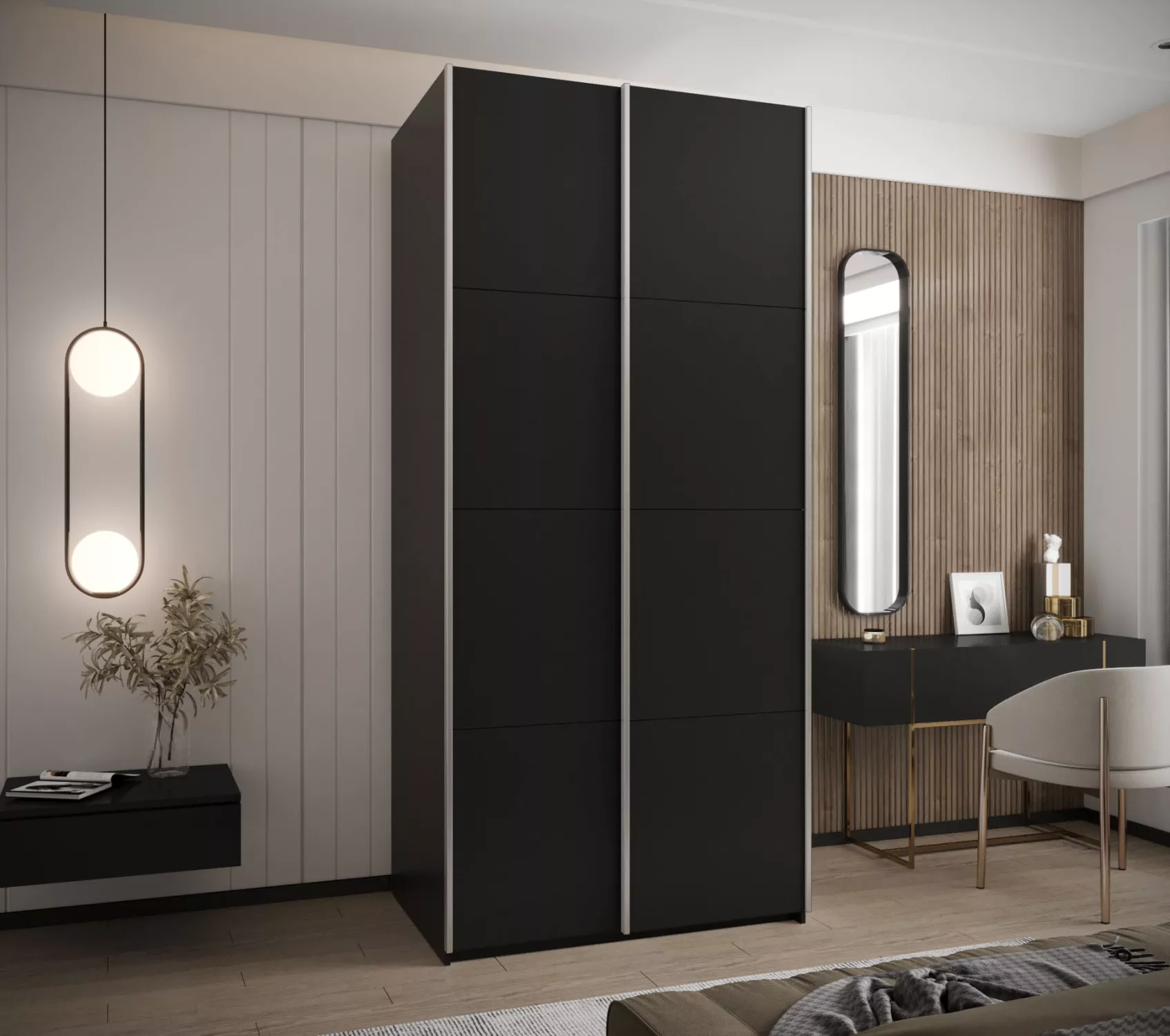Dvoudveřová skříň SAMARA 1 představuje spojení elegance a funkcionality. Nabízí dostatek úložného prostoru v podobě policového systému a 2 šatních tyčí.