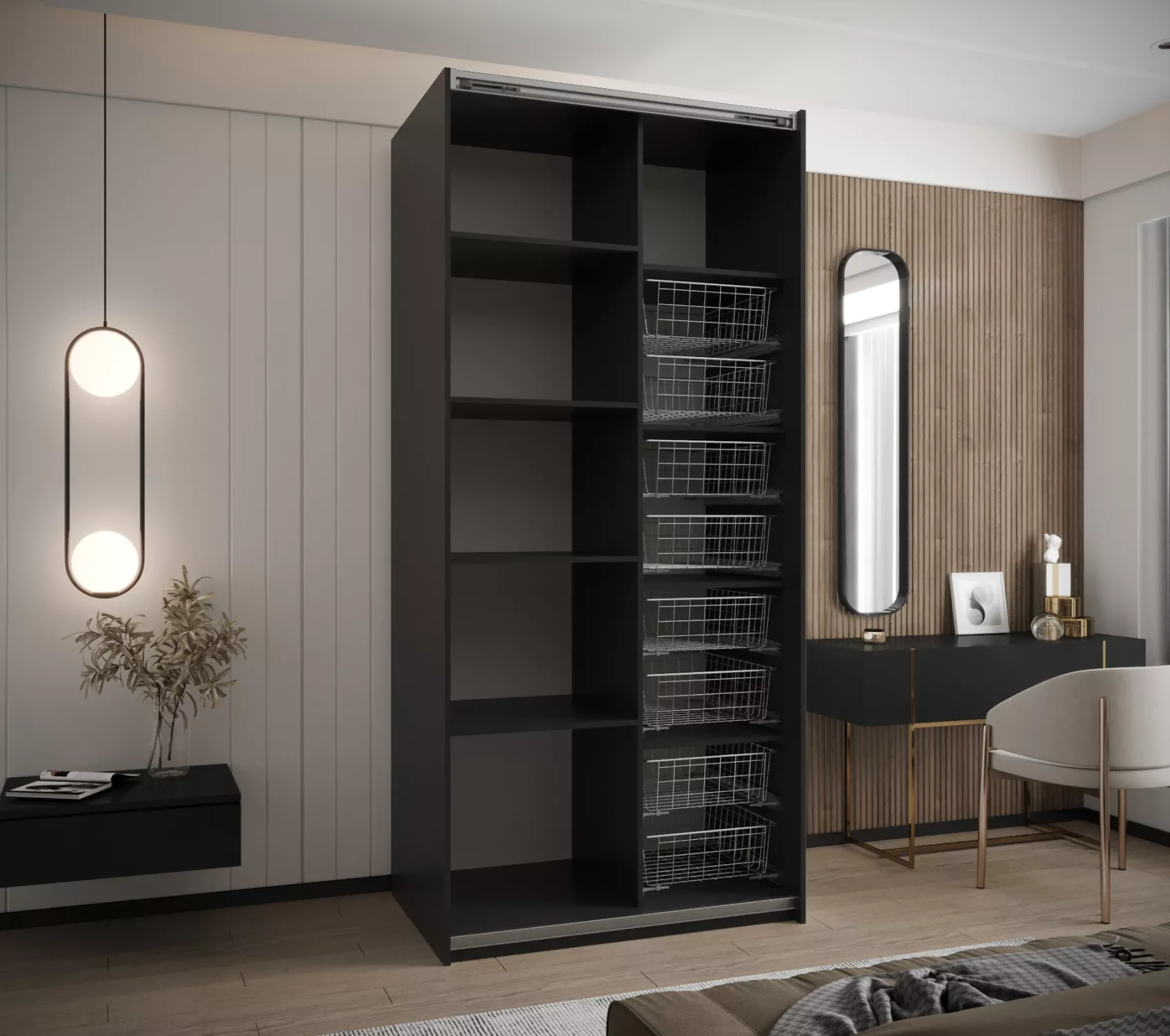 Přídavné police do skříně, šuplíky, drátěný košík a košík na boty najdete k dokoupení v sekci Doporučujeme přikoupit. Do skříně je možné nainstalovat 1 nebo 2 police a maximálně 4 sety šuplíků.