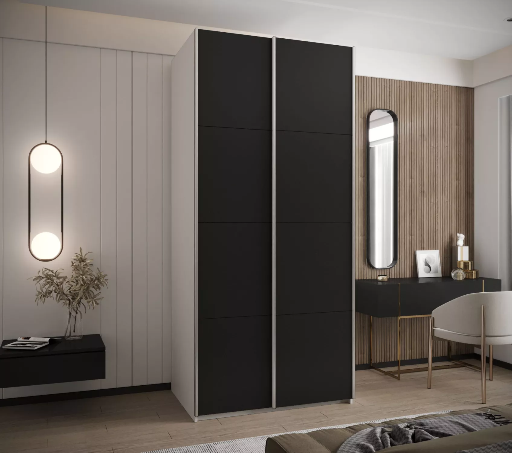 Dvoudveřová skříň SAMARA 1 - 120 cm, bílá / černá / stříbrná