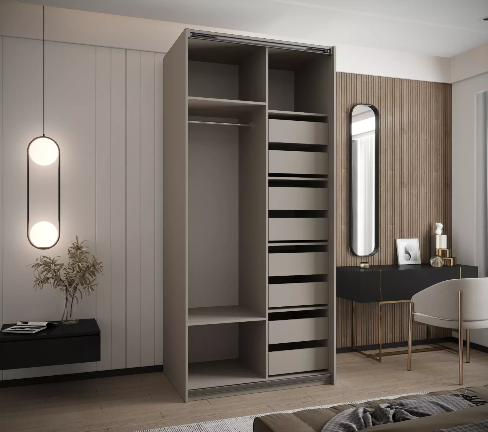 Dvoudveřová skříň SAMARA 1 představuje spojení elegance a funkcionality. Nabízí dostatek úložného prostoru v podobě policového systému a 2 šatních tyčí.