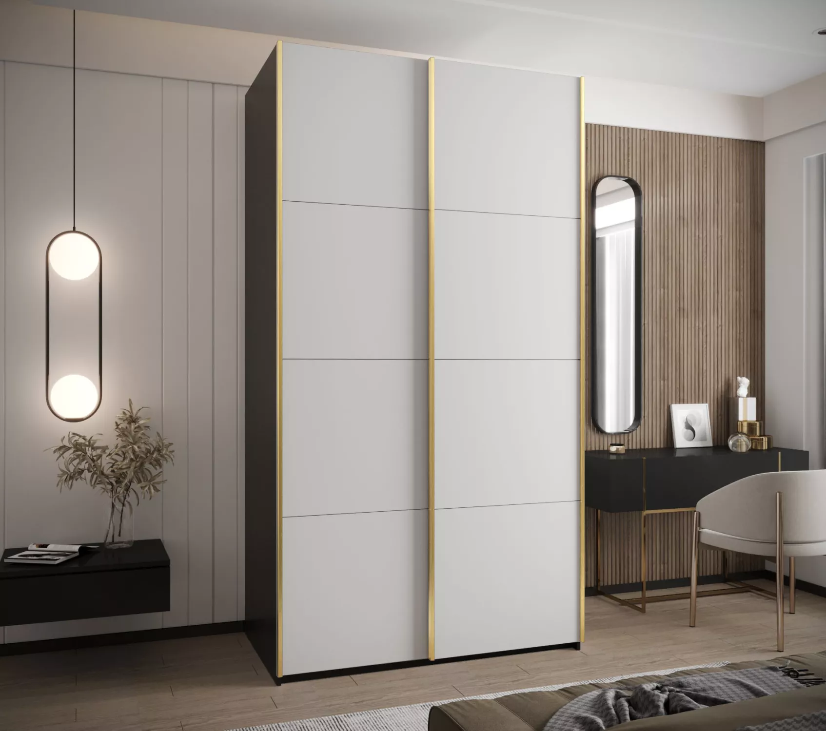 Dvoudveřová skříň SAMARA 1 - 130 cm, černá / bílá / zlatá