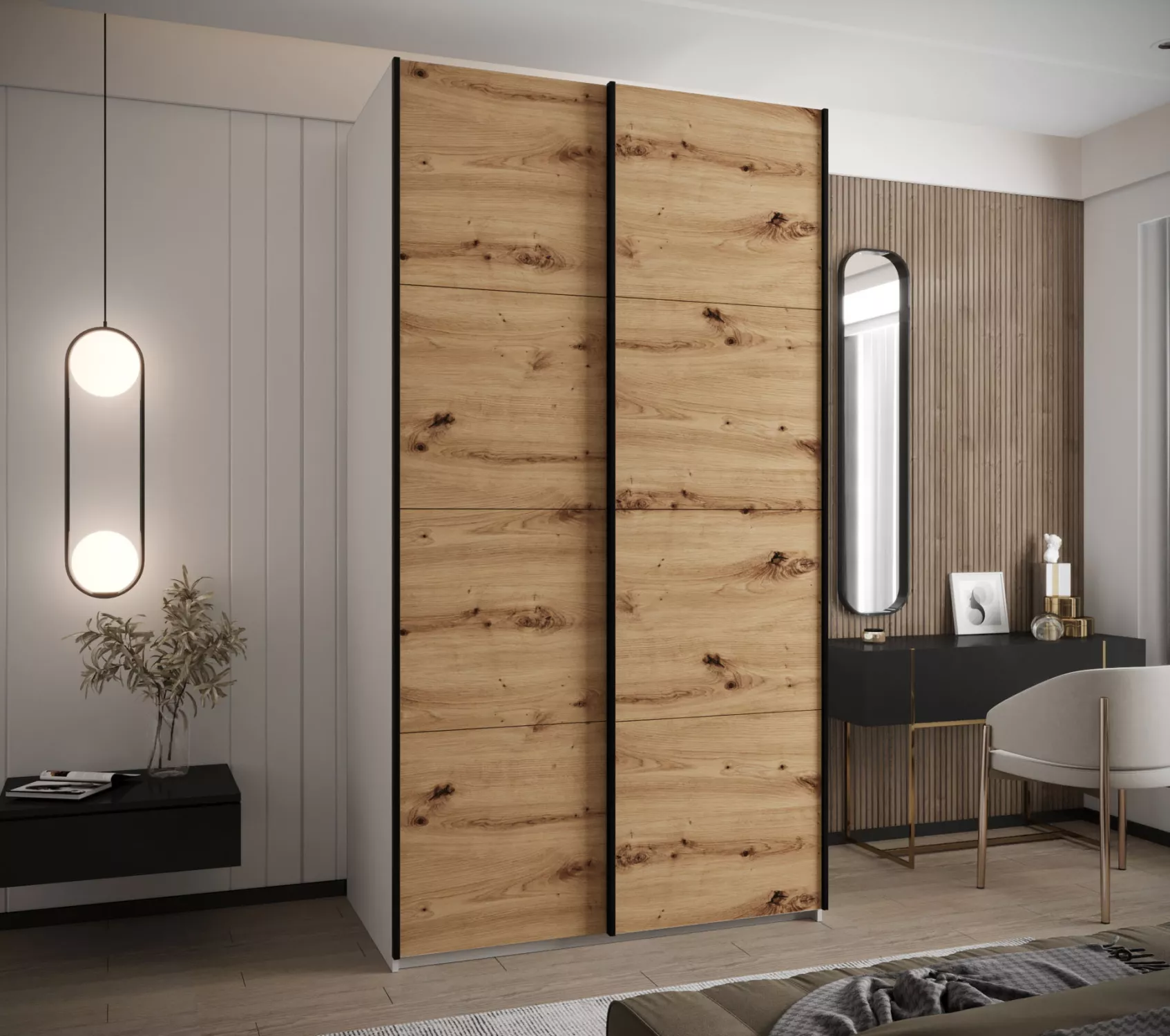 Dvoudveřová skříň SAMARA 1 - 140 cm, bílá / dub artisan / černá