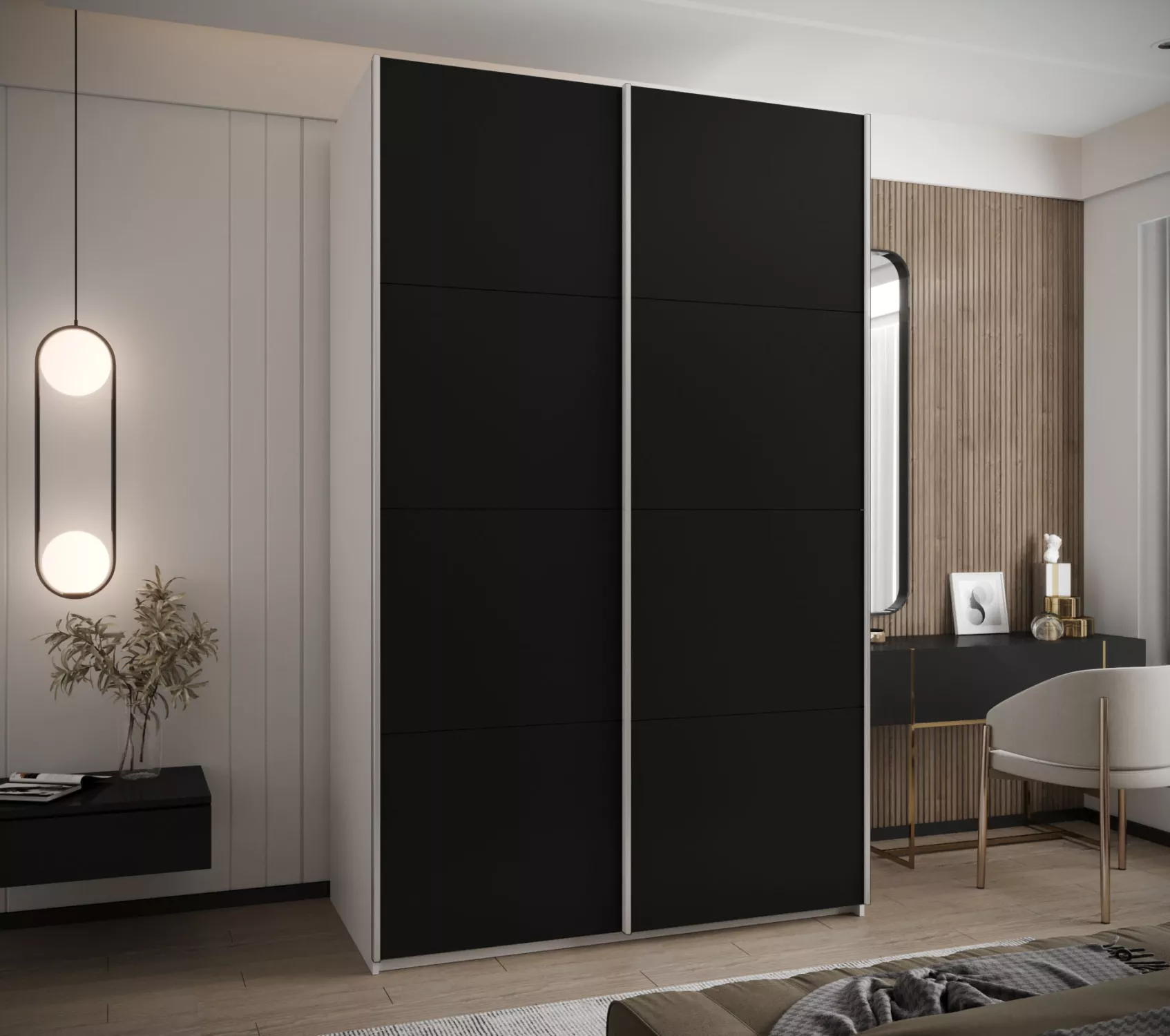 Dvoudveřová skříň SAMARA 1 - 150 cm, bílá / černá / stříbrná