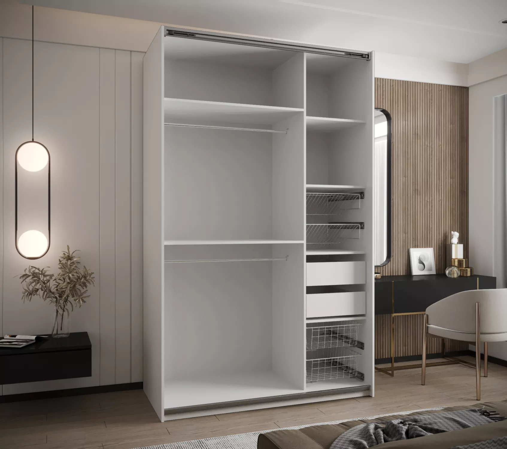 Dvoudveřová skříň SAMARA 1 představuje spojení elegance a funkcionality. Nabízí dostatek úložného prostoru v podobě policového systému a 2 šatních tyčí.