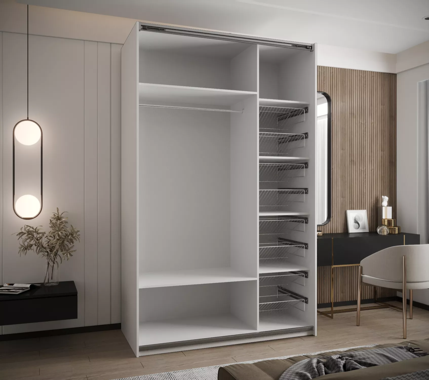 Dvoudveřová skříň SAMARA 1 představuje spojení elegance a funkcionality. Nabízí dostatek úložného prostoru v podobě policového systému a 2 šatních tyčí.