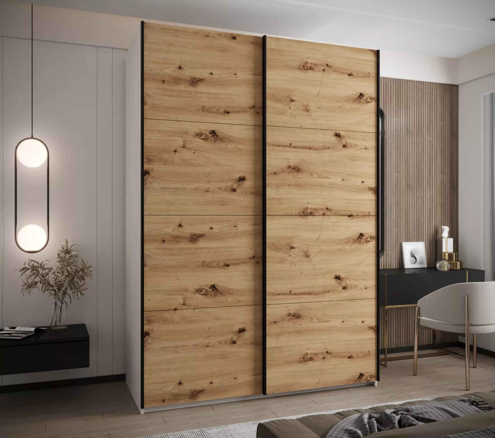 Dvoudveřová skříň SAMARA 1 - 180 cm, bílá / dub artisan / černá