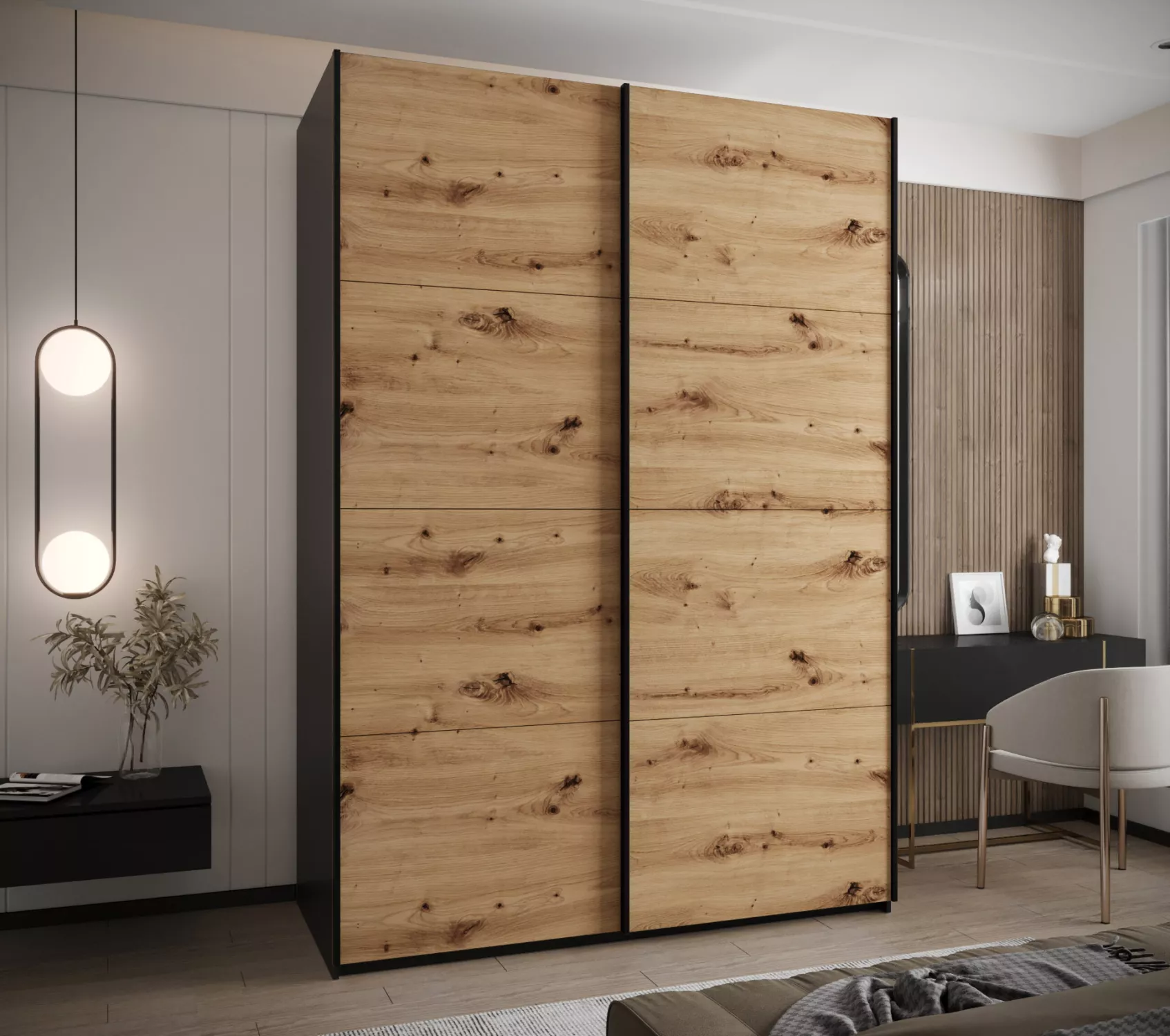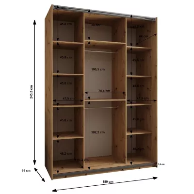 Dvoudveřová skříň SAMARA 1 - 180 cm, černá / dub artisan / černá