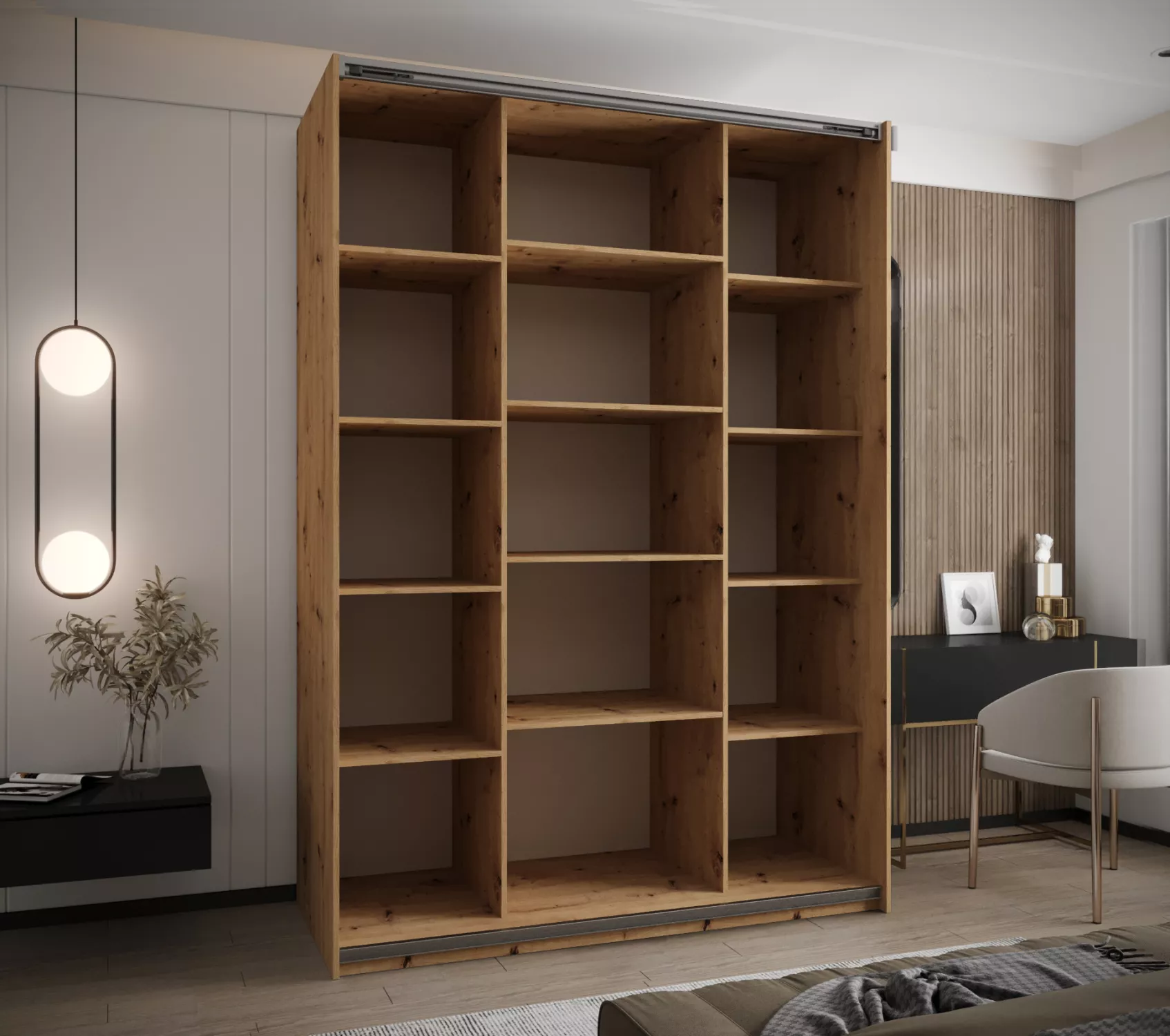 Dvoudveřová skříň SAMARA 1 představuje spojení elegance a funkcionality. Nabízí dostatek úložného prostoru v podobě policového systému a 2 šatních tyčí.