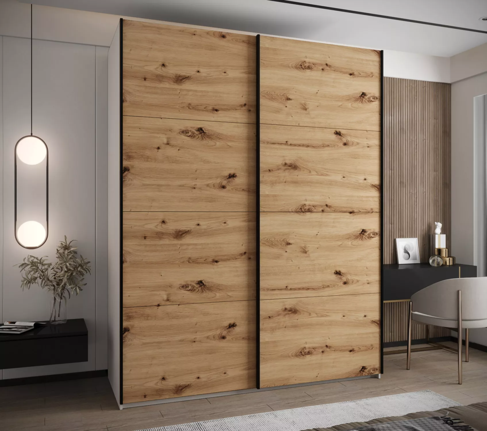 Dvoudveřová skříň SAMARA 1 - 190 cm, bílá / dub artisan / černá