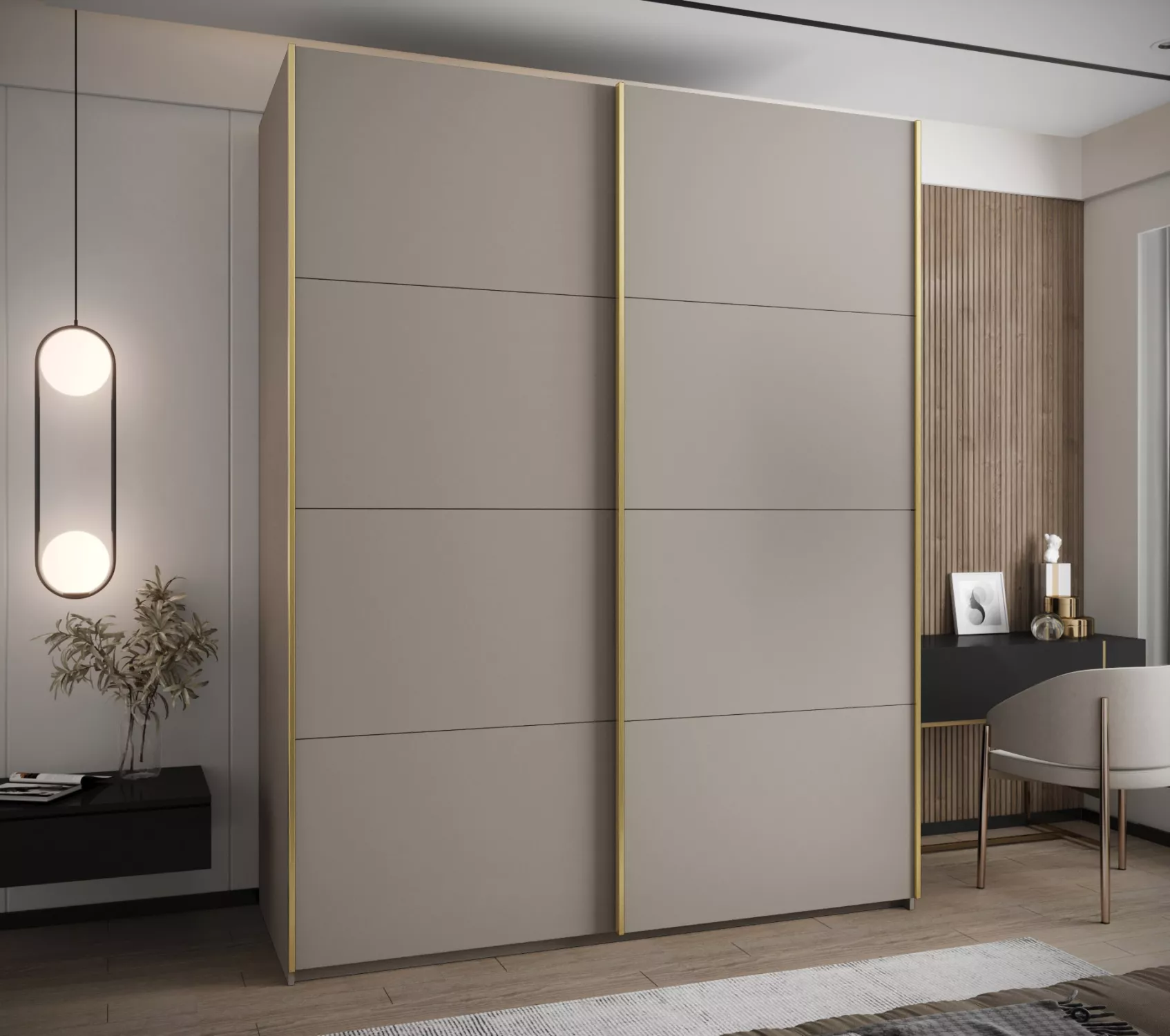 Dvoudveřová skříň SAMARA 1 - 190 cm, kašmír / zlatá