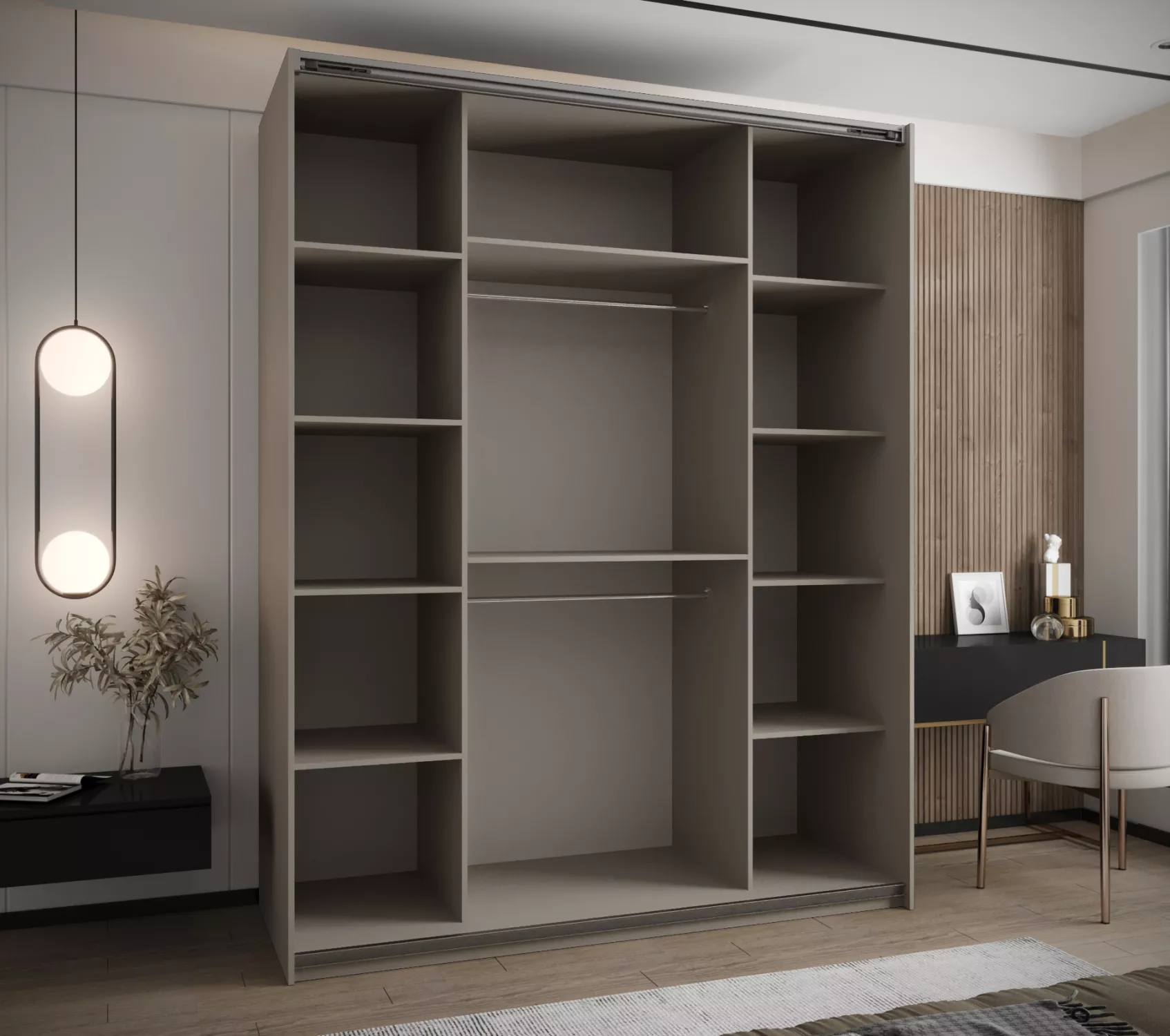 Dvoudveřová skříň SAMARA 1 představuje spojení elegance a funkcionality. Nabízí dostatek úložného prostoru v podobě policového systému a 2 šatních tyčí.