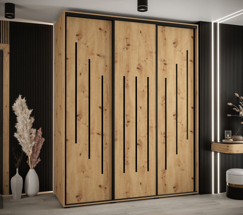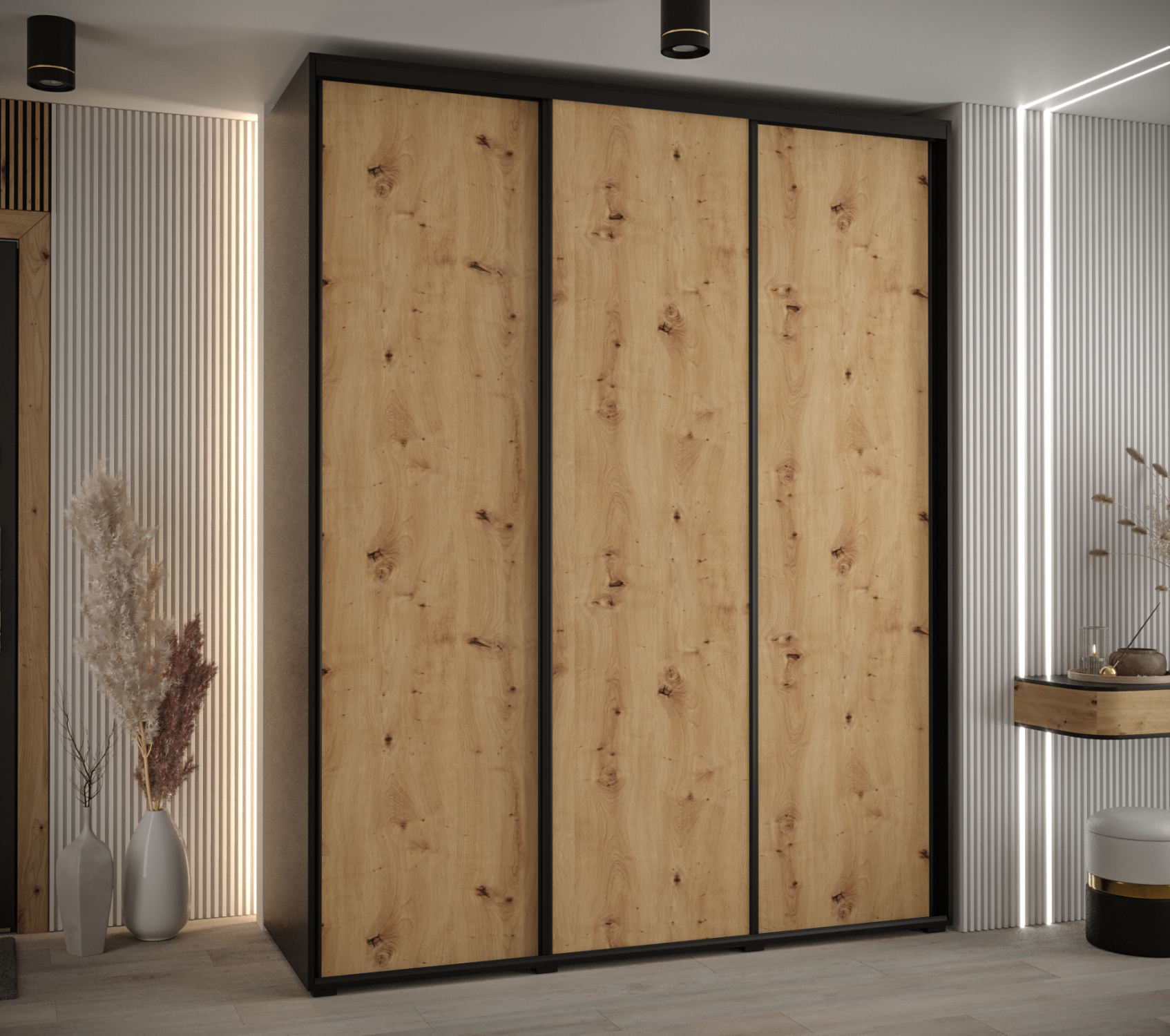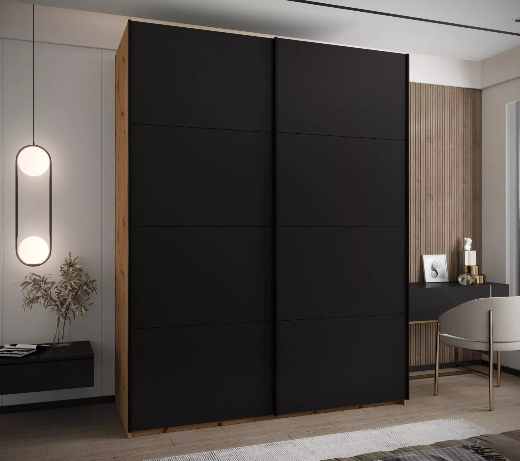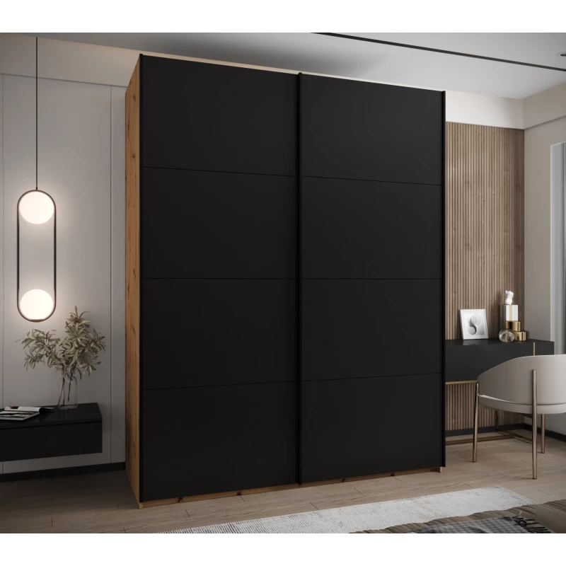Dvoudveřová skříň SAMARA 1 - 200 cm, dub artisan / černá / černá