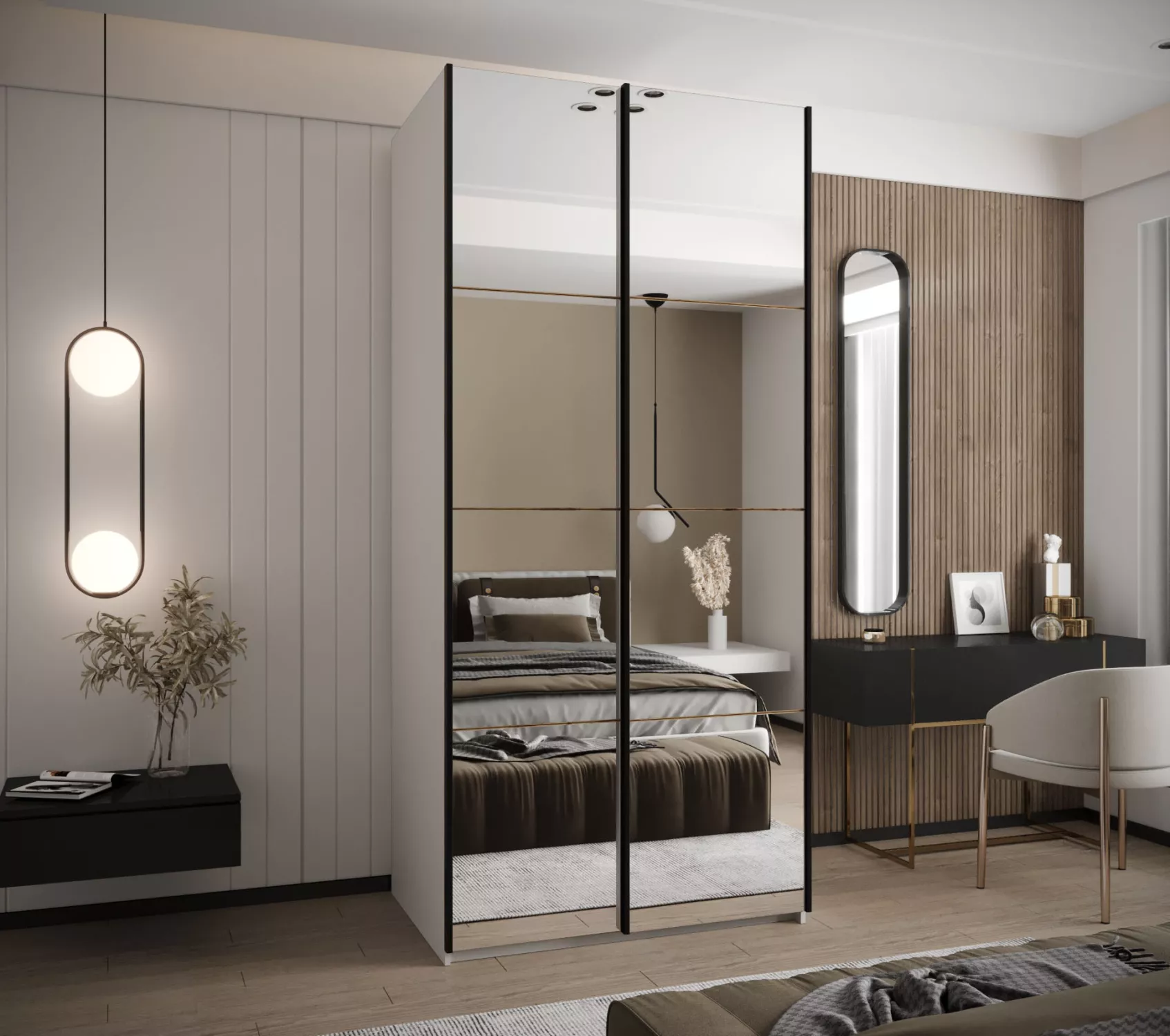 Dvoudveřová skříň SAMARA 2 představuje spojení elegance a funkcionality. Nabízí dostatek úložného prostoru v podobě policového systému a 2 šatních tyčí.
